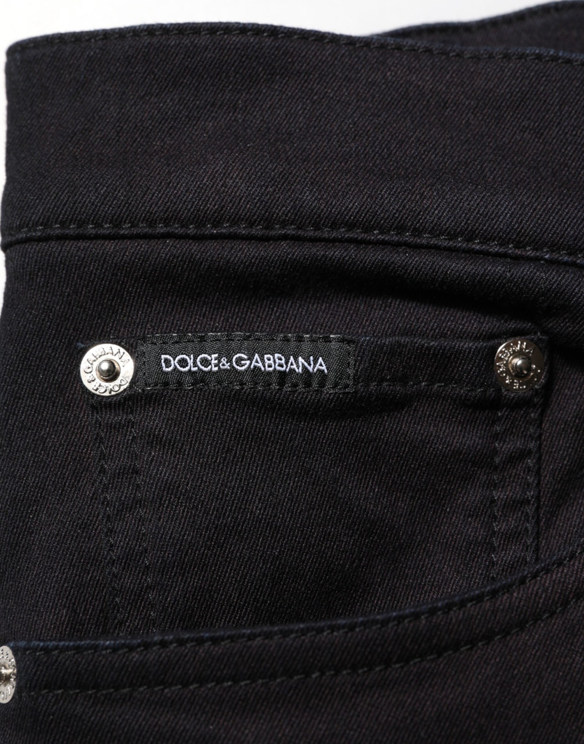 Gorgeous, brand new 100% Authentic Dolce & Gabbana black skinny trousers are crafted from a premium cotton blend for a sleek, tailored fit with a hint of stretch for all-day comfort. Designed with a flat-front silhouette, zip fly with button closure, and subtle logo detailing, these trousers exude sophistication while maintaining a modern edge. Perfect for pairing with formal shirts or smart-casual looks.