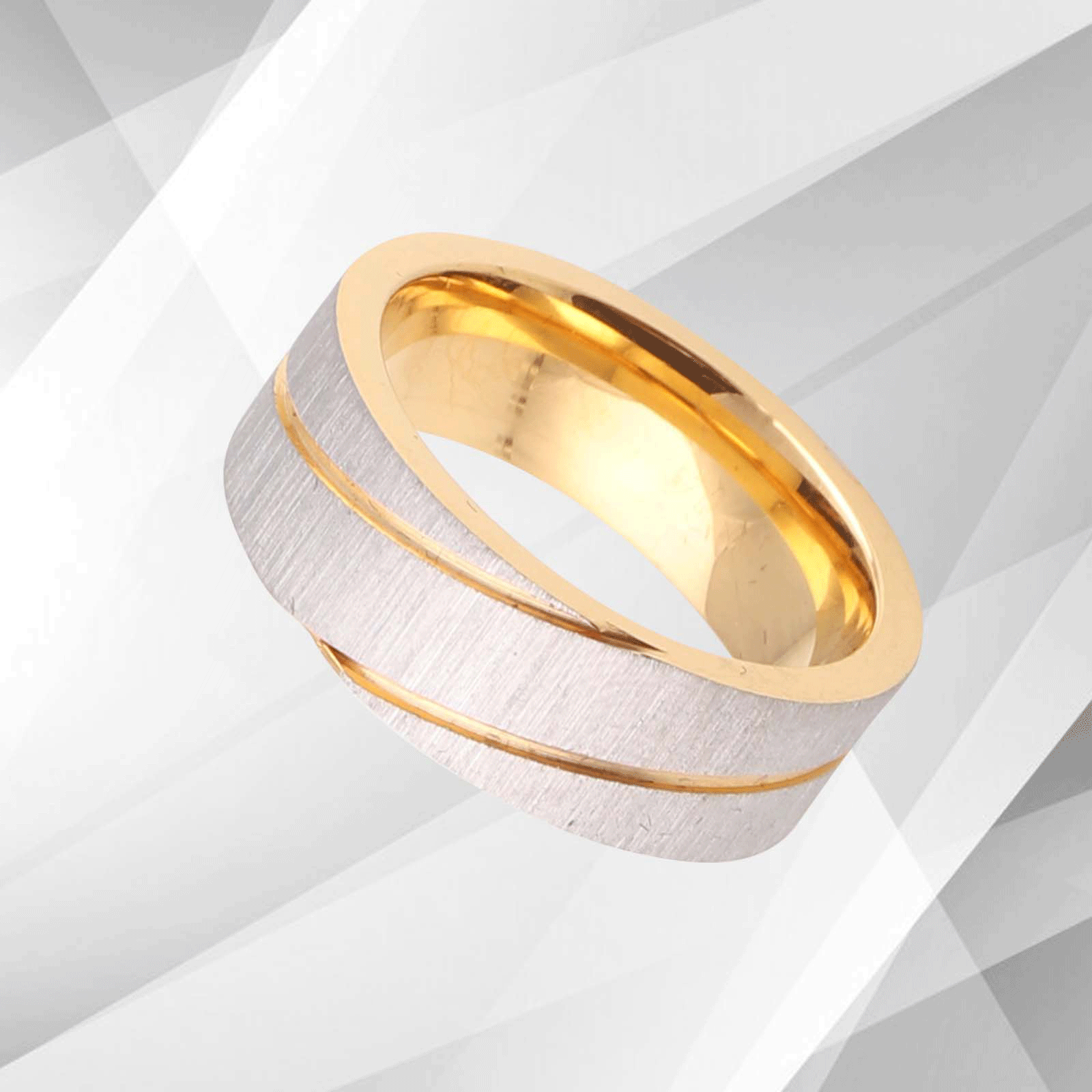 7mm Men's 18Ct Yellow And White Gold Over Flat Titanium Engagement Band Ring UK, Ring Size U