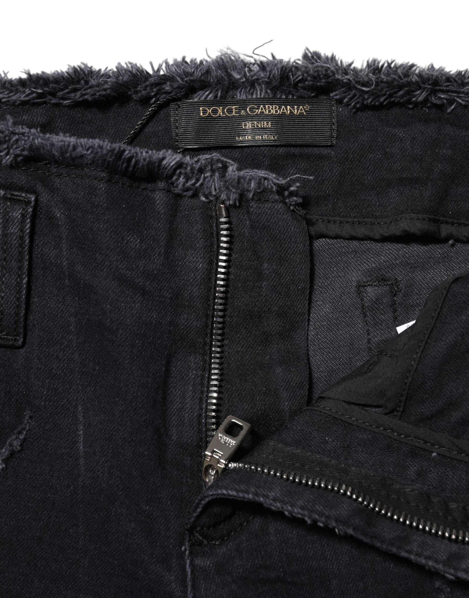 Gorgeous brand new, 100% Authentic Dolce & Gabbana skinny mid waist tattered denim jeans with DG logo plaque.