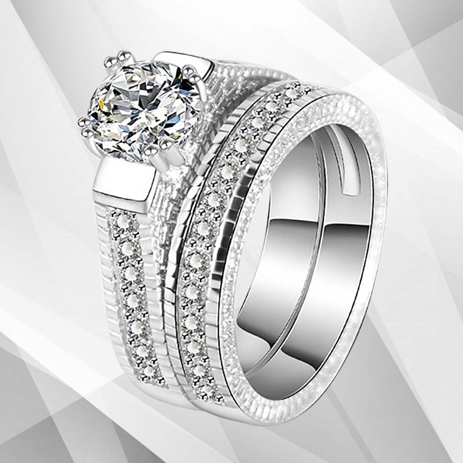 2.50Ct Diamond Posh Bridal Engagement Double Band Ring Set 18Ct White Gold Over