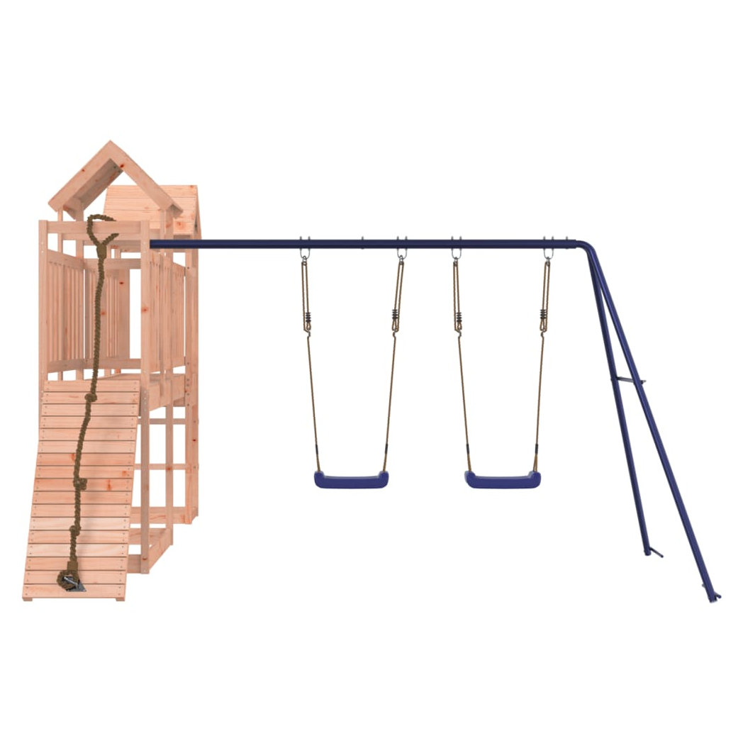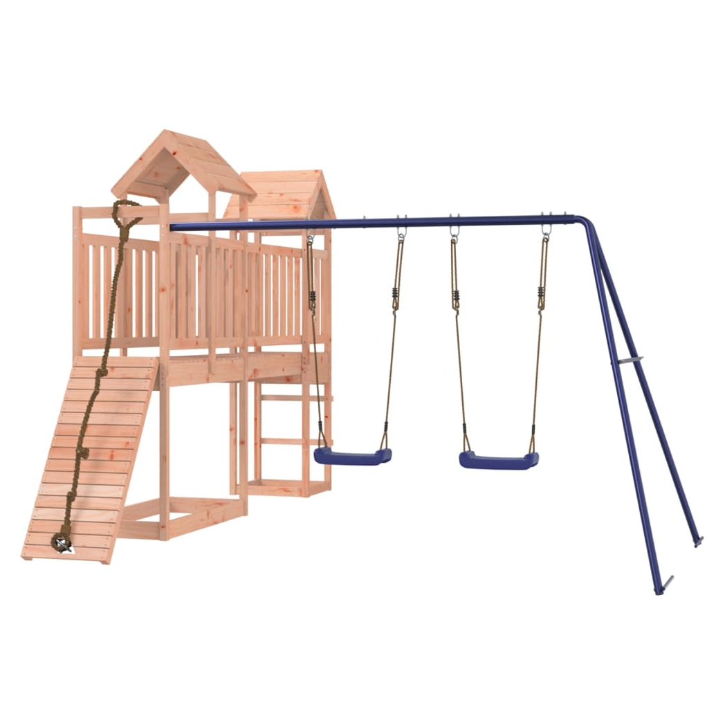 Playhouse with Climbing Wall Swings Solid Wood Douglas