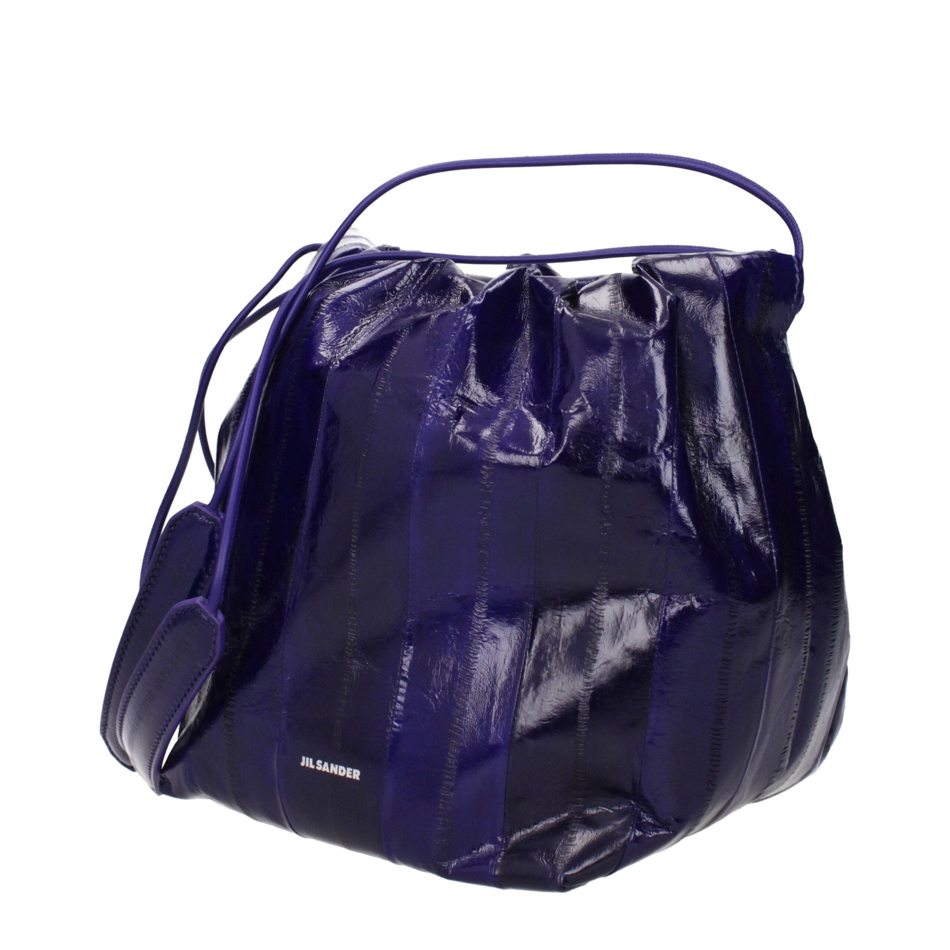 The product with MPN J07WG0027P5828531 and code F85011 leather in violet is a shoulder bags designed by Jil Sander. It has features like aged effect, vintage effect, front logo.