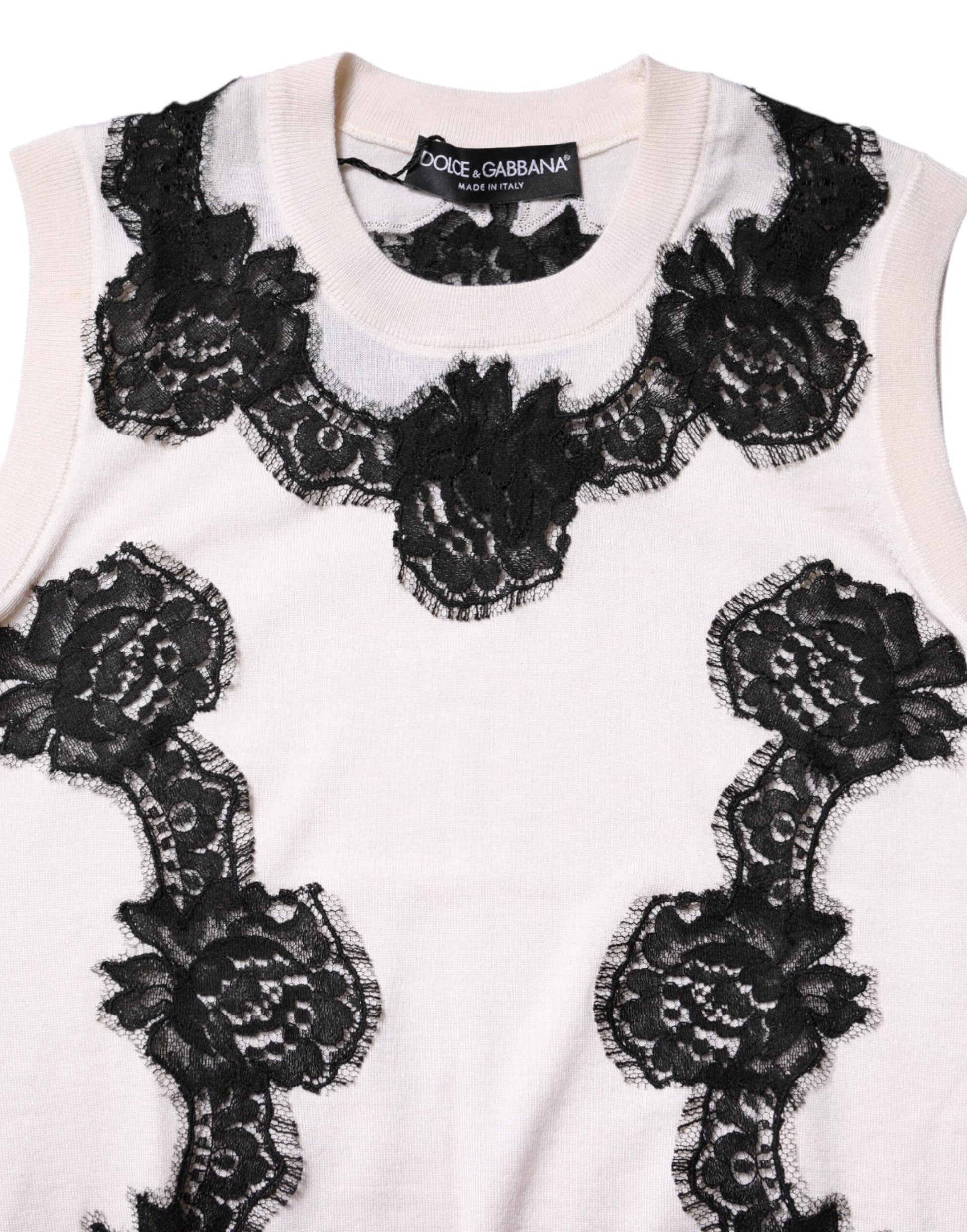 Gorgeous brand new, 100% Authentic Dolce & Gabbana pullover tank top crafted from cashmere features a crew neck and sleeveless with floral lace detailing.