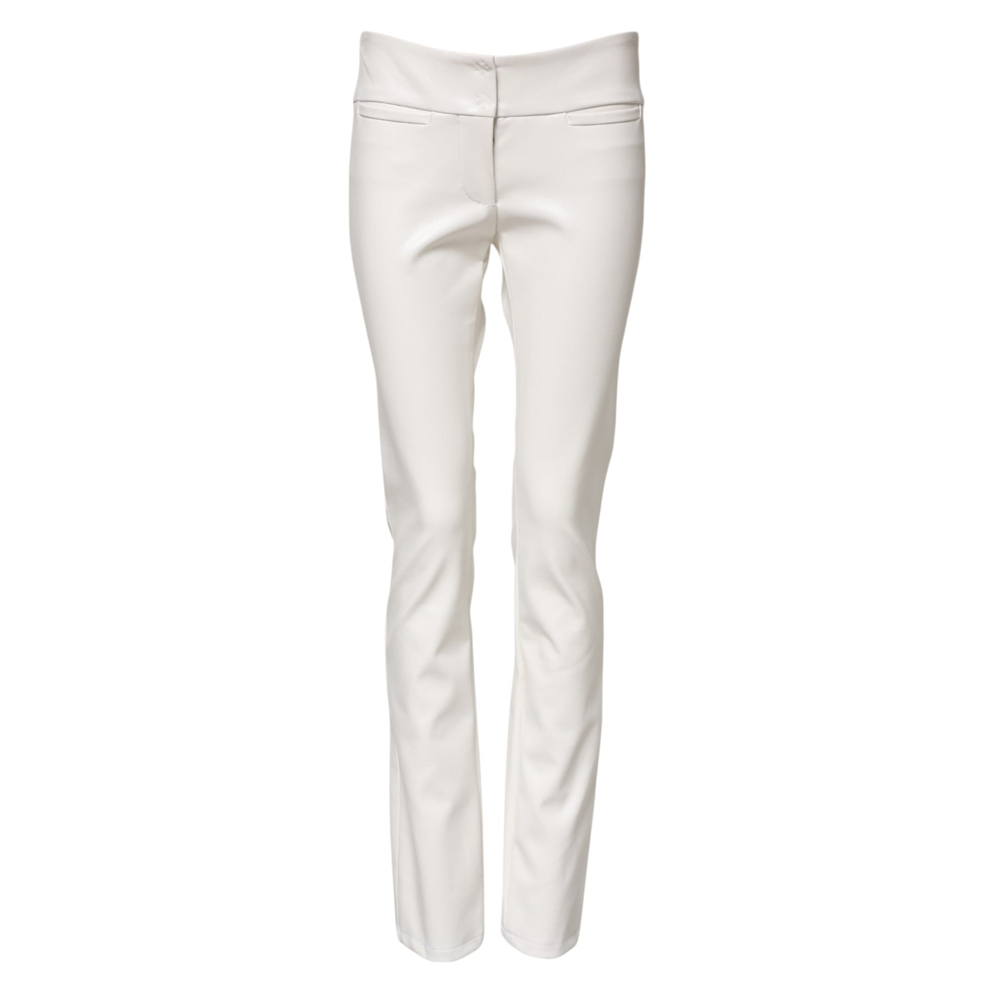 White Polyurethane High Waist Tapered Pants
