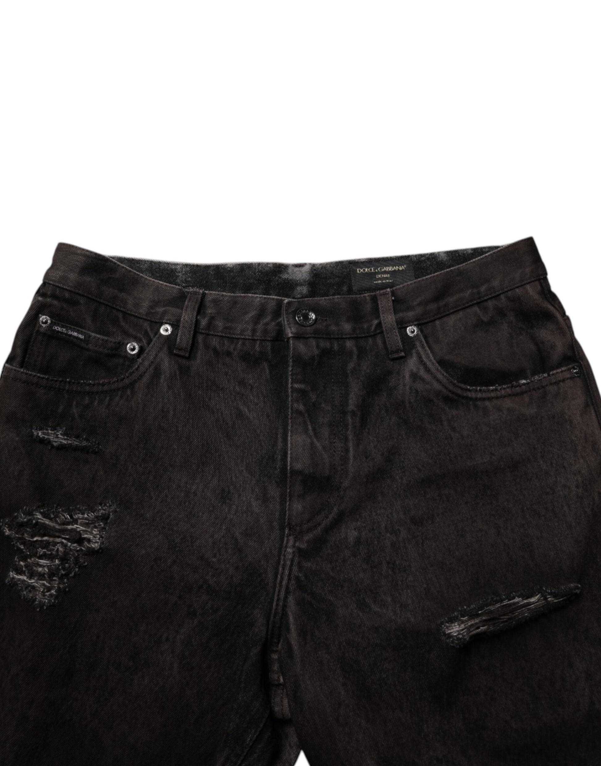 Gorgeous brand new, 100% Authentic Dolce & Gabbana Tattered Denim Bermuda Shorts, crafted from premium black cotton for comfort and durability. Featuring a mid-waist fit and distressed detailing, these shorts are perfect for casual outings, street-style ensembles, or summer wear with a modern twist.