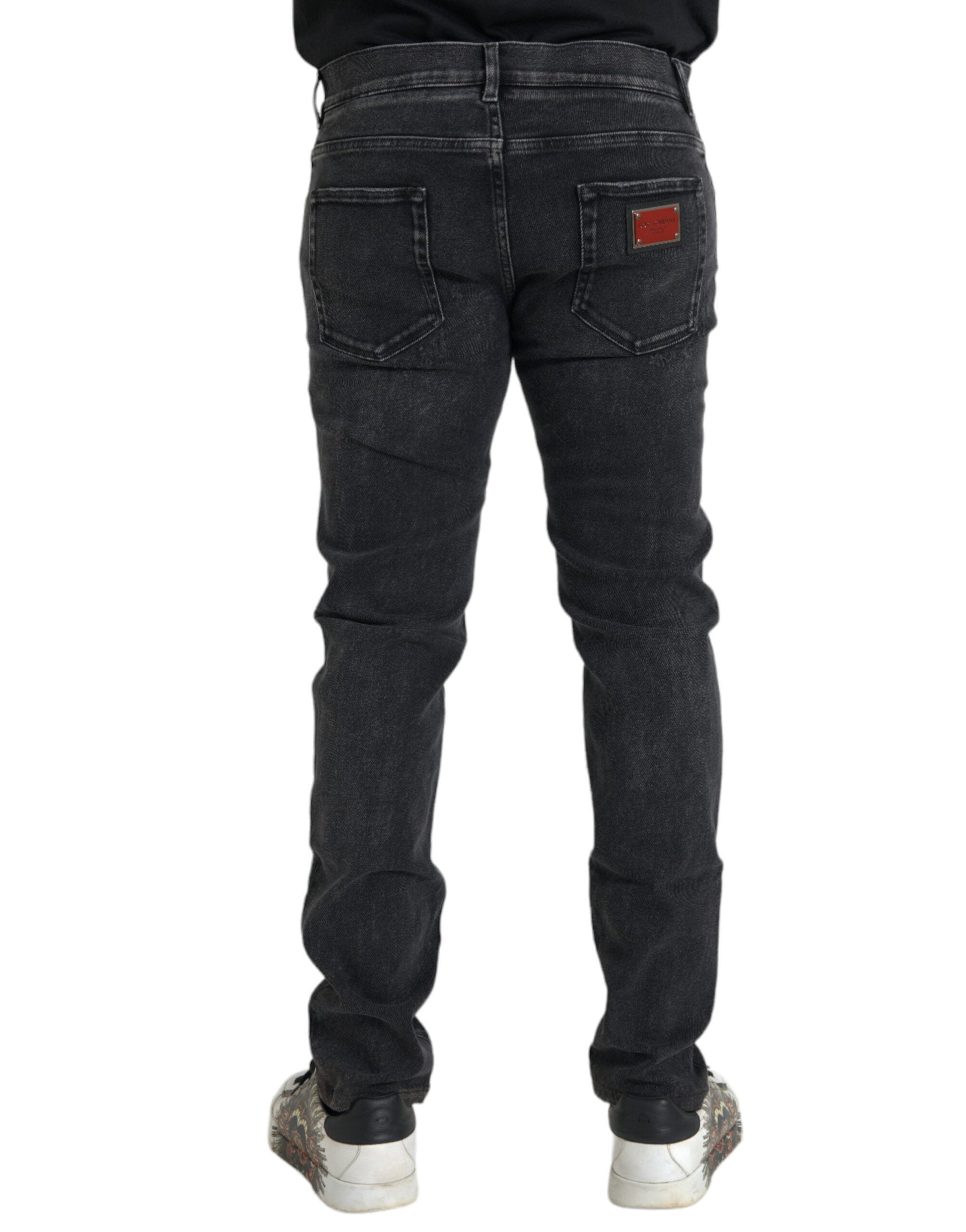 Gray Cotton Stretch Skinny Denim Logo Jeans