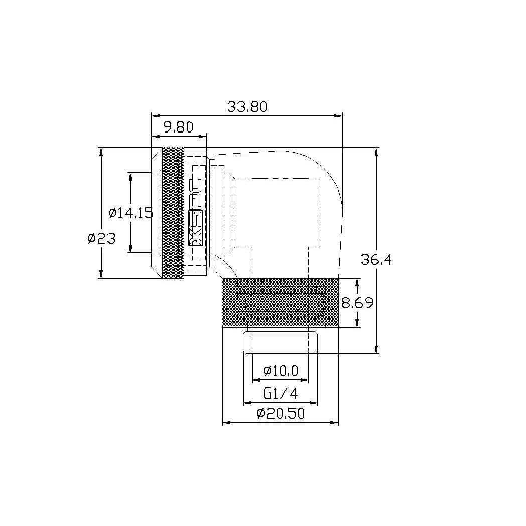 XSPC G1/4 to 14mm Rigid Tubing - 90 Rotary Fitting V2 (Black Chrome)