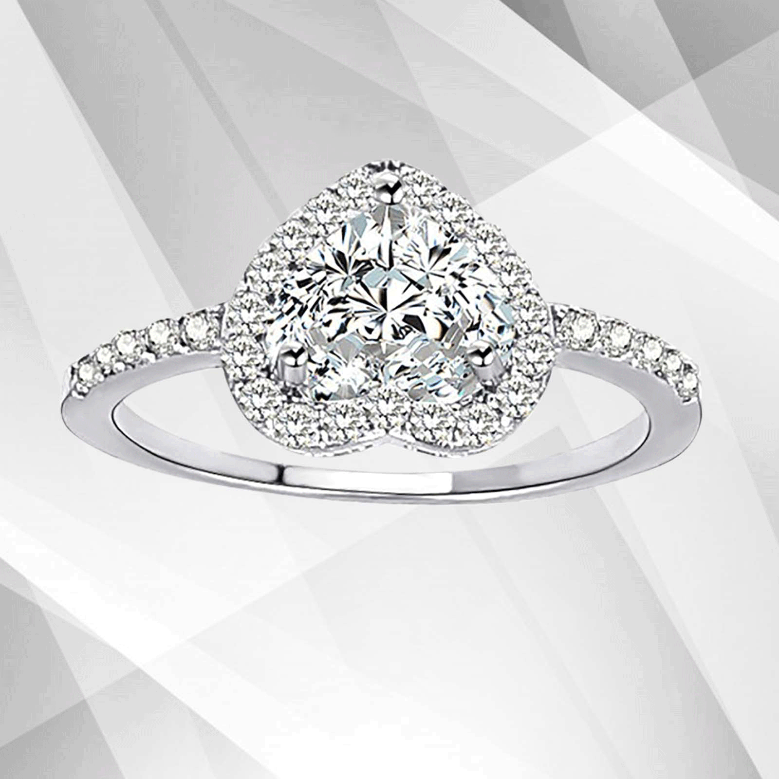2.88Ct Heart-Cut CZ Diamonds Halo Bridal Engagement Ring 18Ct White Gold Over, Ring Size O