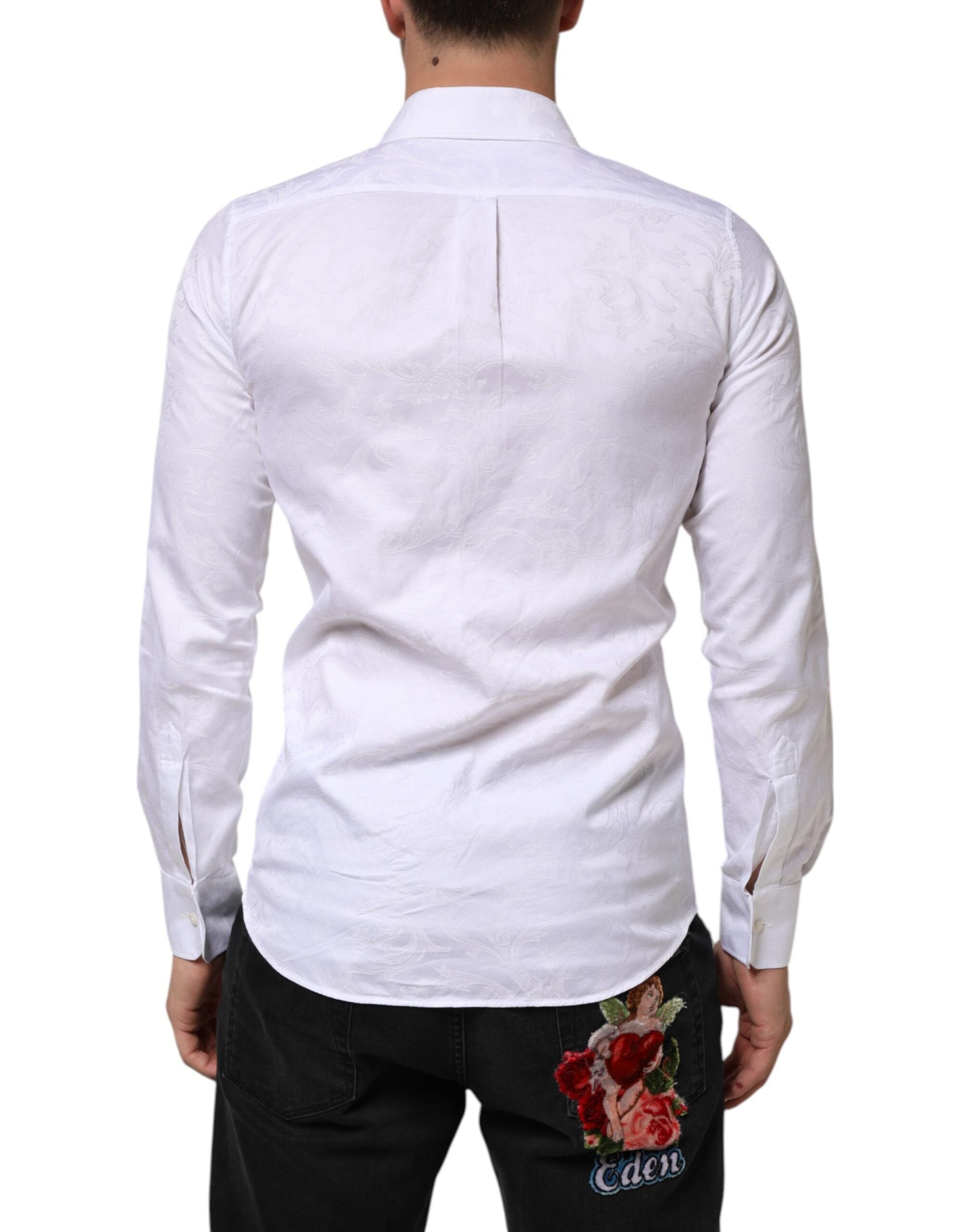 Gorgeous brand new, 100% Authentic Dolce & Gabbana Martini fit dress shirt, crafted from fine white cotton with an elegant paisley jacquard weave. The Martini fit offers a sharp, tailored silhouette that complements modern suiting or evening wear.