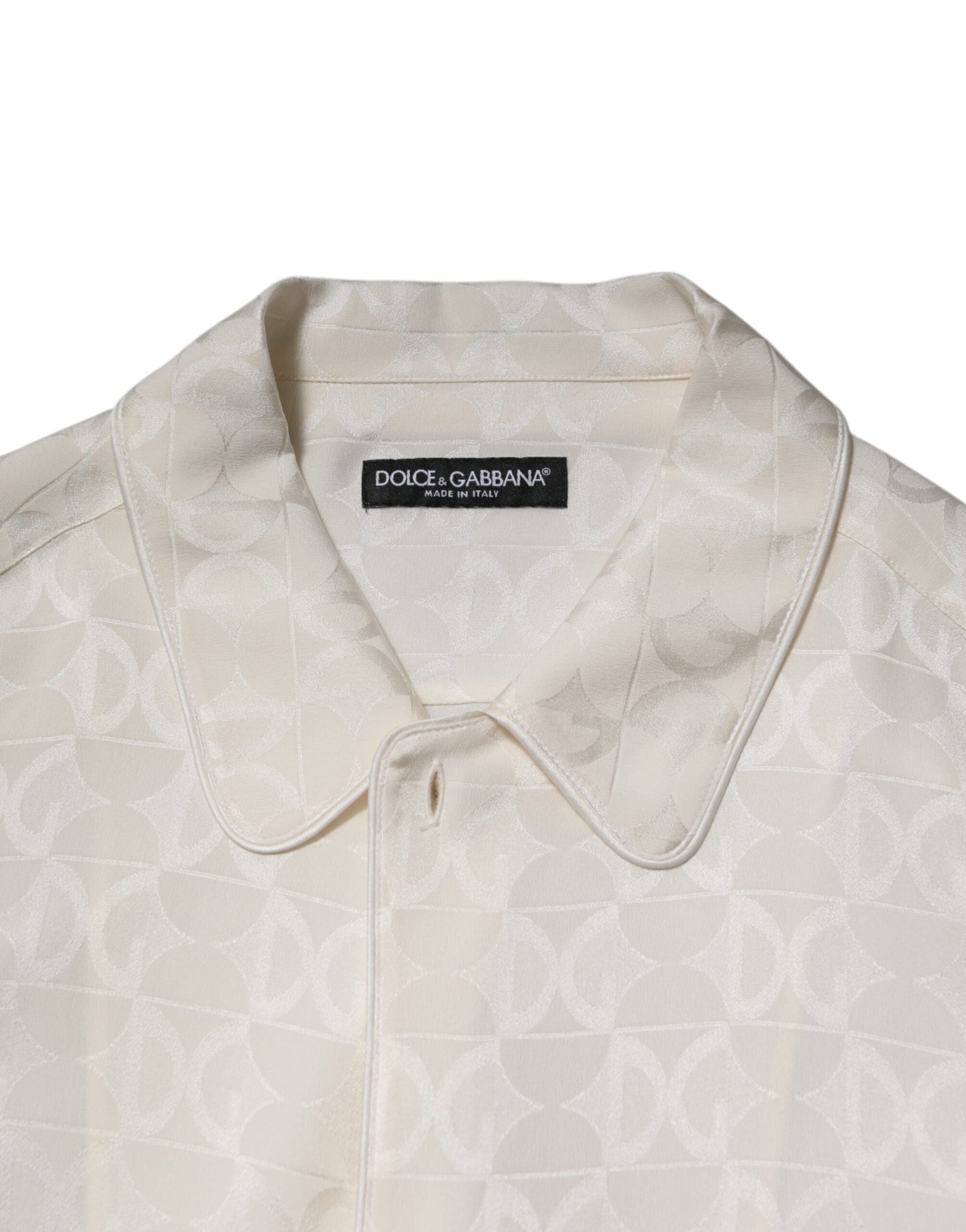 Gorgeous brand new, 100% Authentic DOLCE & GABBANA dress shirt with a sleek all-over DG logo print on luxurious white silk. This long-sleeve shirt features a classic collar, button-down front, and refined tailoring that offers a sophisticated silhouette. Crafted in Italy, it combines elegance and comfort — a perfect addition to any modern gentleman’s wardrobe for formal or upscale occasions.