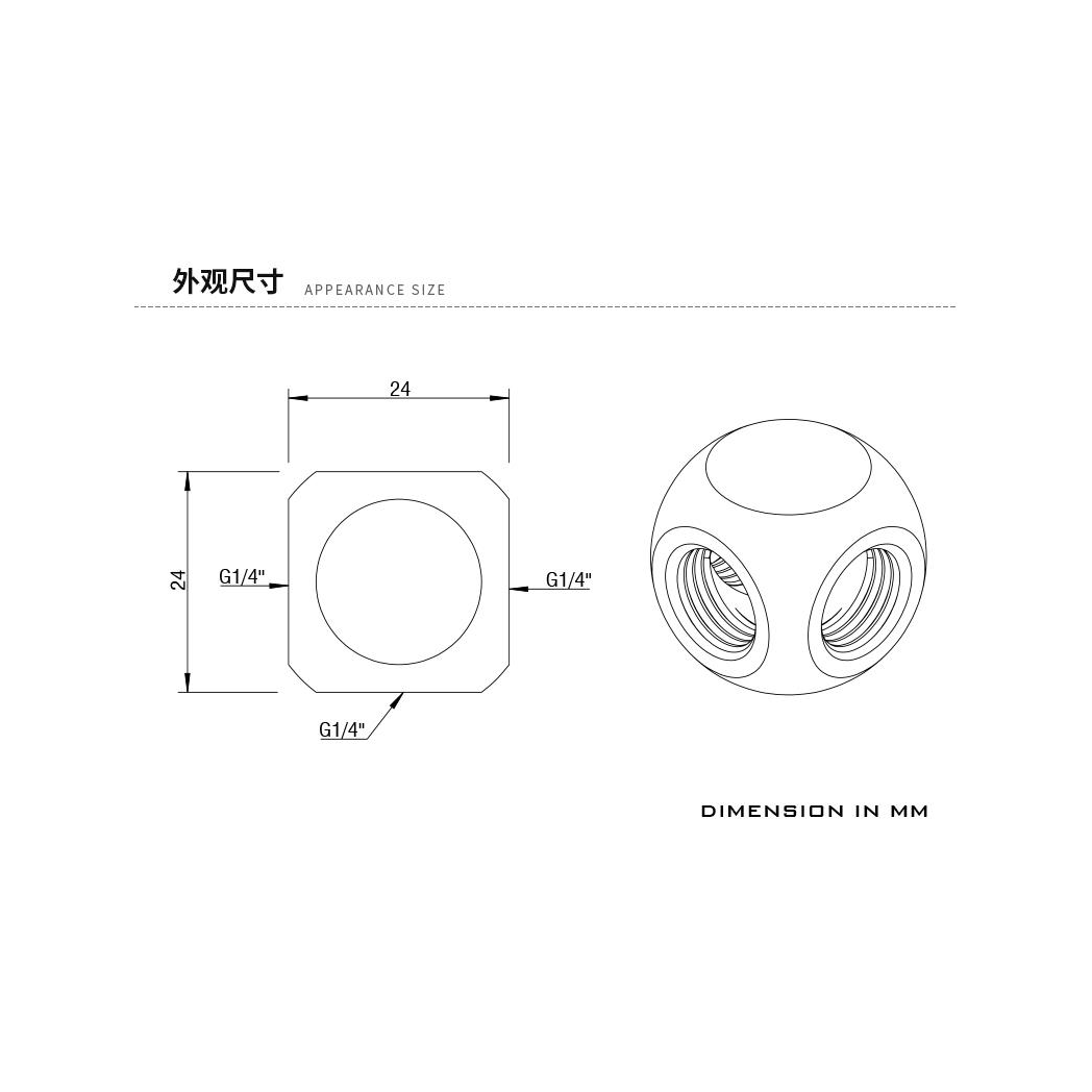 1x Barrow G1/4 Female 3 Way T-Splitter - Shiny Silver