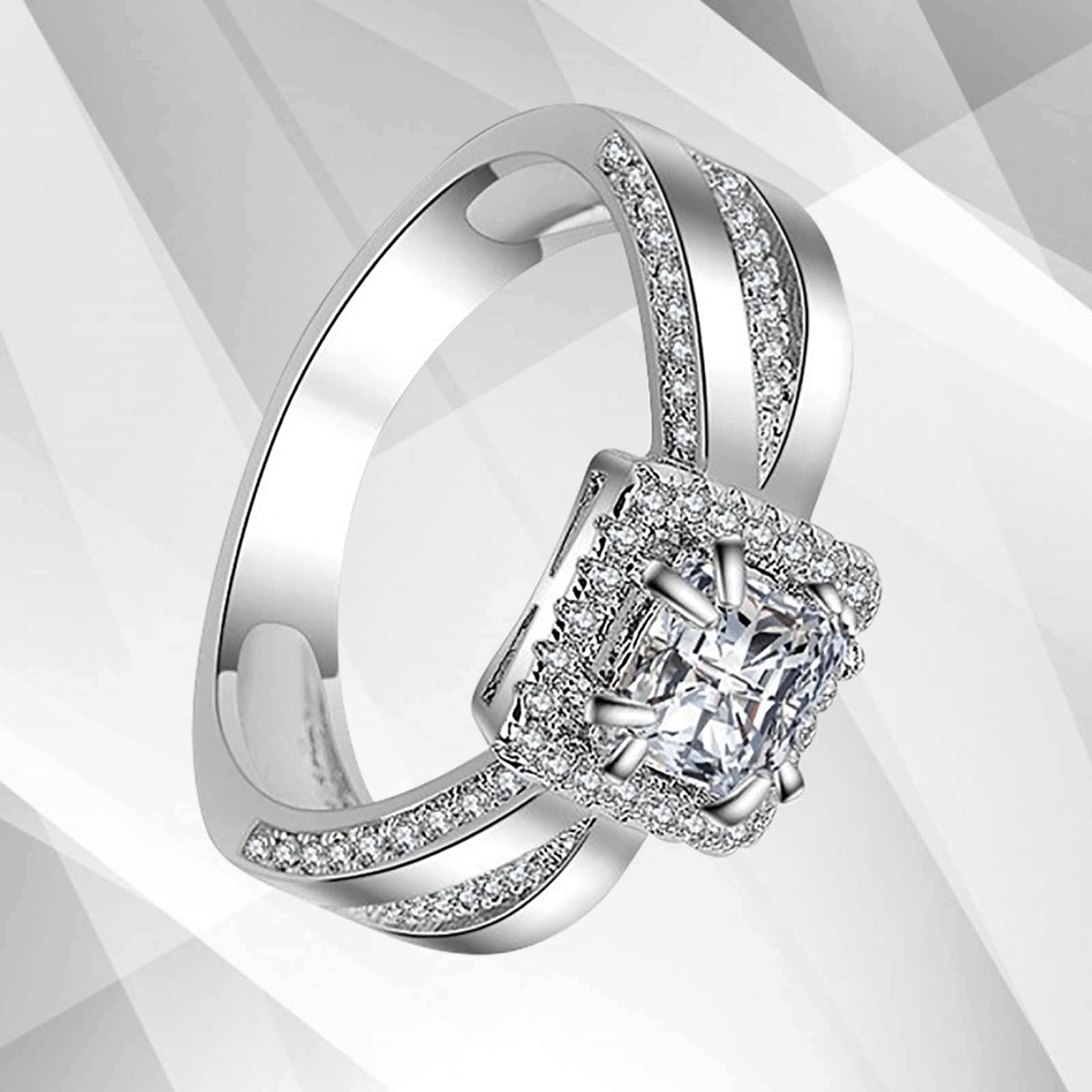 2.0Ct Square-Cut Diamond Cushion Halo Bridal Engagement Ring 18K White Gold Over