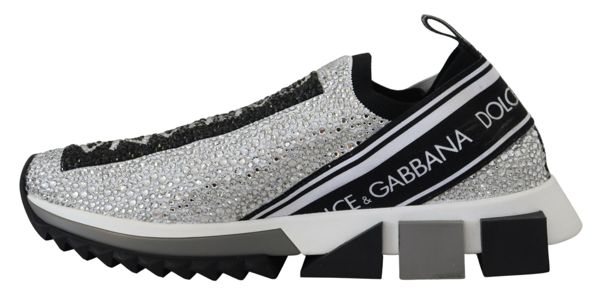 Gorgeous, brand new with tags 100% Authentic Dolce & Gabbana Silver rhinestones sorrento sneakers. Featuring a round toe, a slip-on style, a pull tab at the rear and a ridged rubber sole.