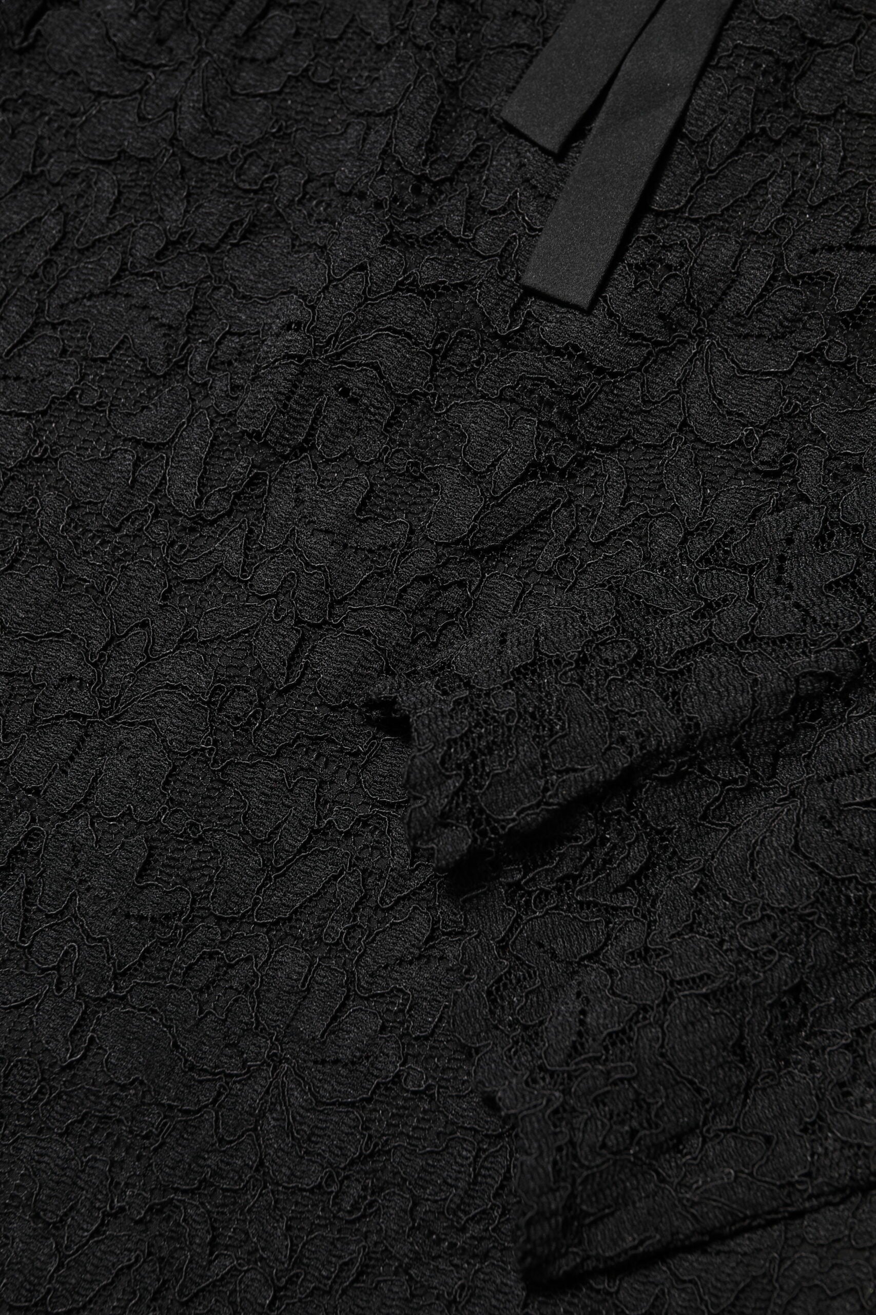 Black Nylon Lace Long Sleeve Blouse Top