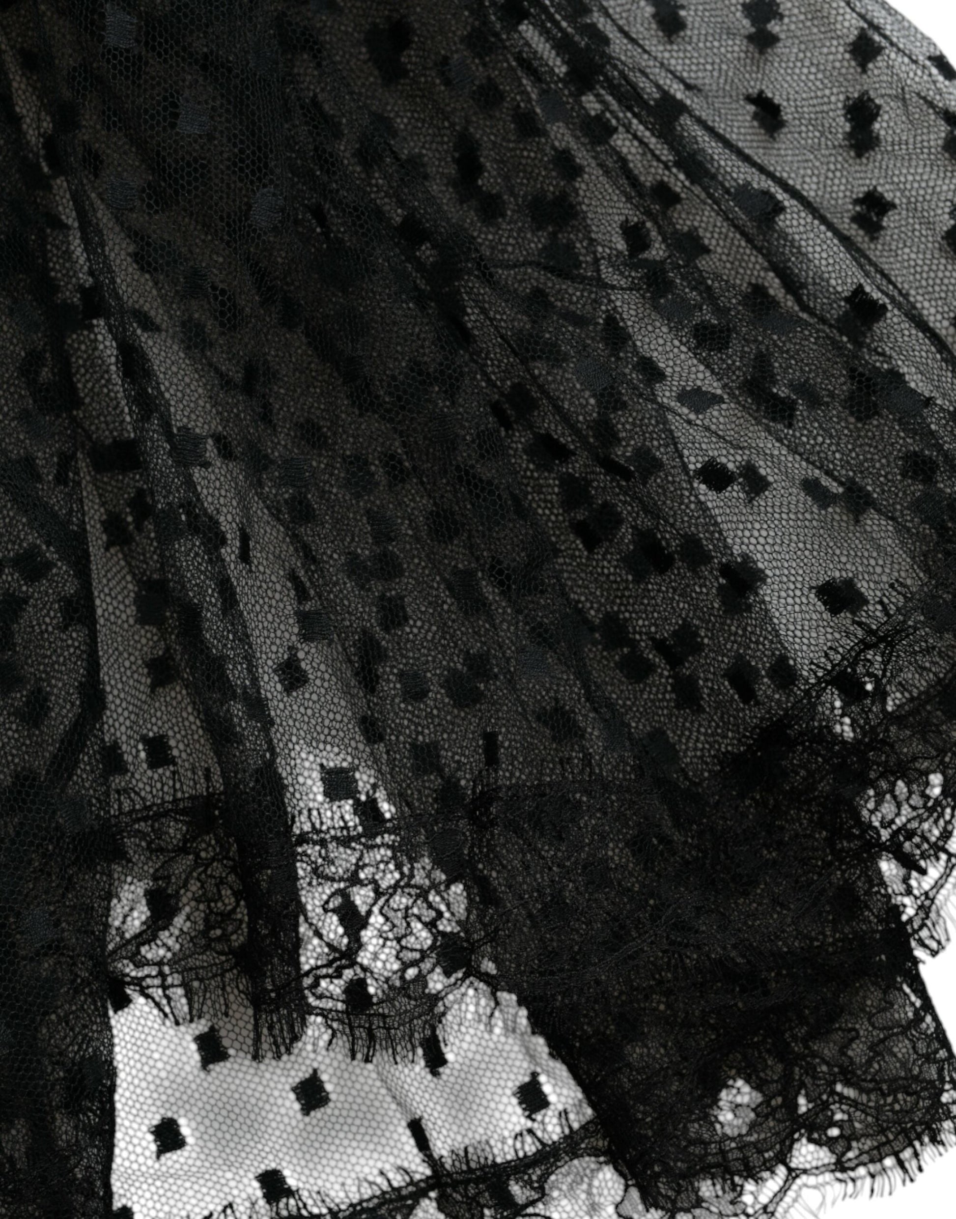Black Nylon Lace Trim High Waist A-line Skirt