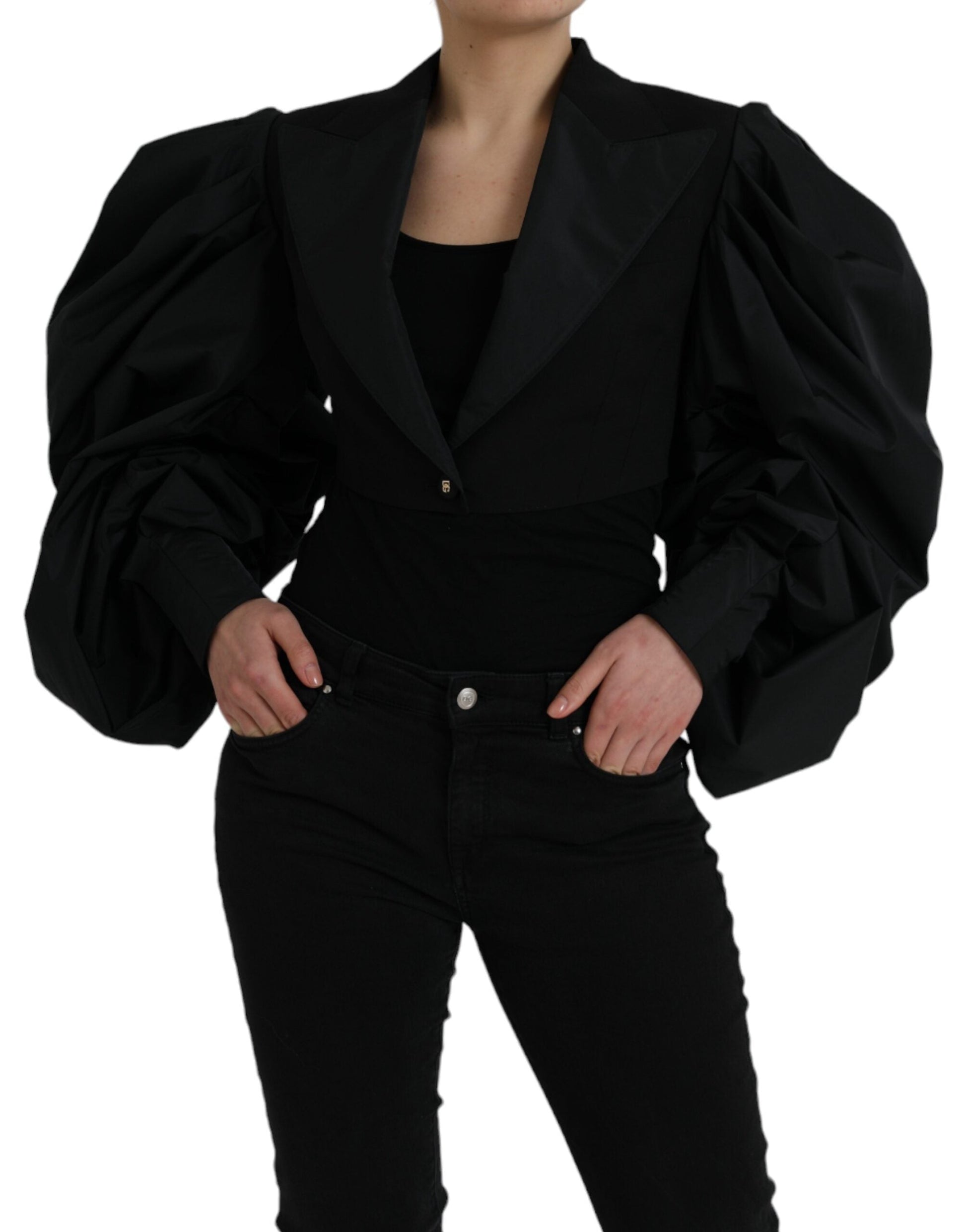 Gorgeous brand new, 100% Authentic Dolce & Gabbana jacket. Made from a polyester blend, it has satin lapels and gathered puff sleeves.
