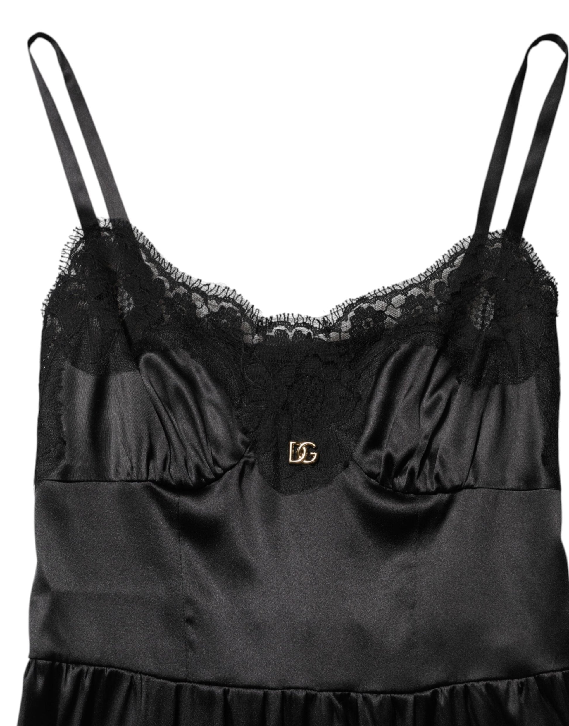 Gorgeous brand new with tags, 100% Authentic Dolce & Gabbana black mini dress. Crafted from a luxurious silk blend, this elegant piece features delicate lace trim at the neckline and hemline, a bust fitted with DG logo detail, and thin adjustable straps. Perfect for evening wear or special occasions.
