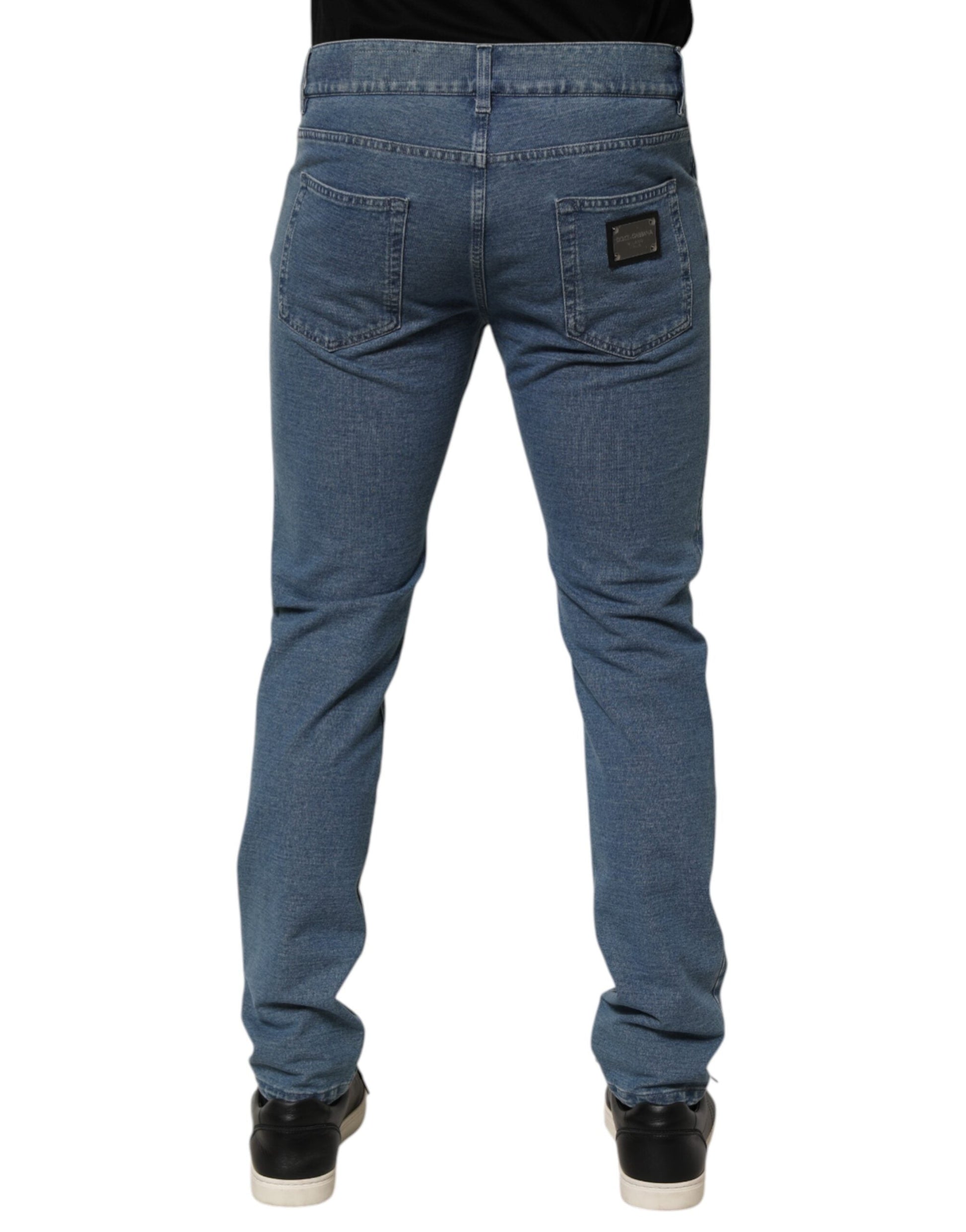 Gorgeous brand new, 100% Authentic Dolce & Gabbana Slim Fit Jeans, crafted from high-quality cotton elastane denim. Designed with a sleek skinny silhouette detailing, these jeans offer a modern, fashion-forward look. Featuring classic five-pocket styling and a zip-button closure, they deliver both comfort and statement style—perfect for streetwear or elevated casual outfits.