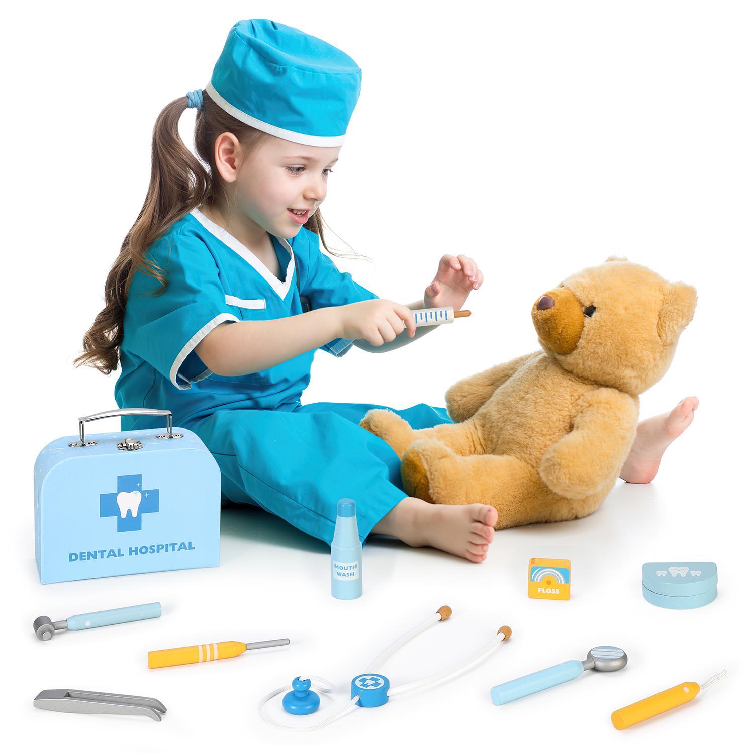 SOKA Wooden Dental Hospital Pretend Play Dentist Doctor Toy Medical Tool Kit 3+