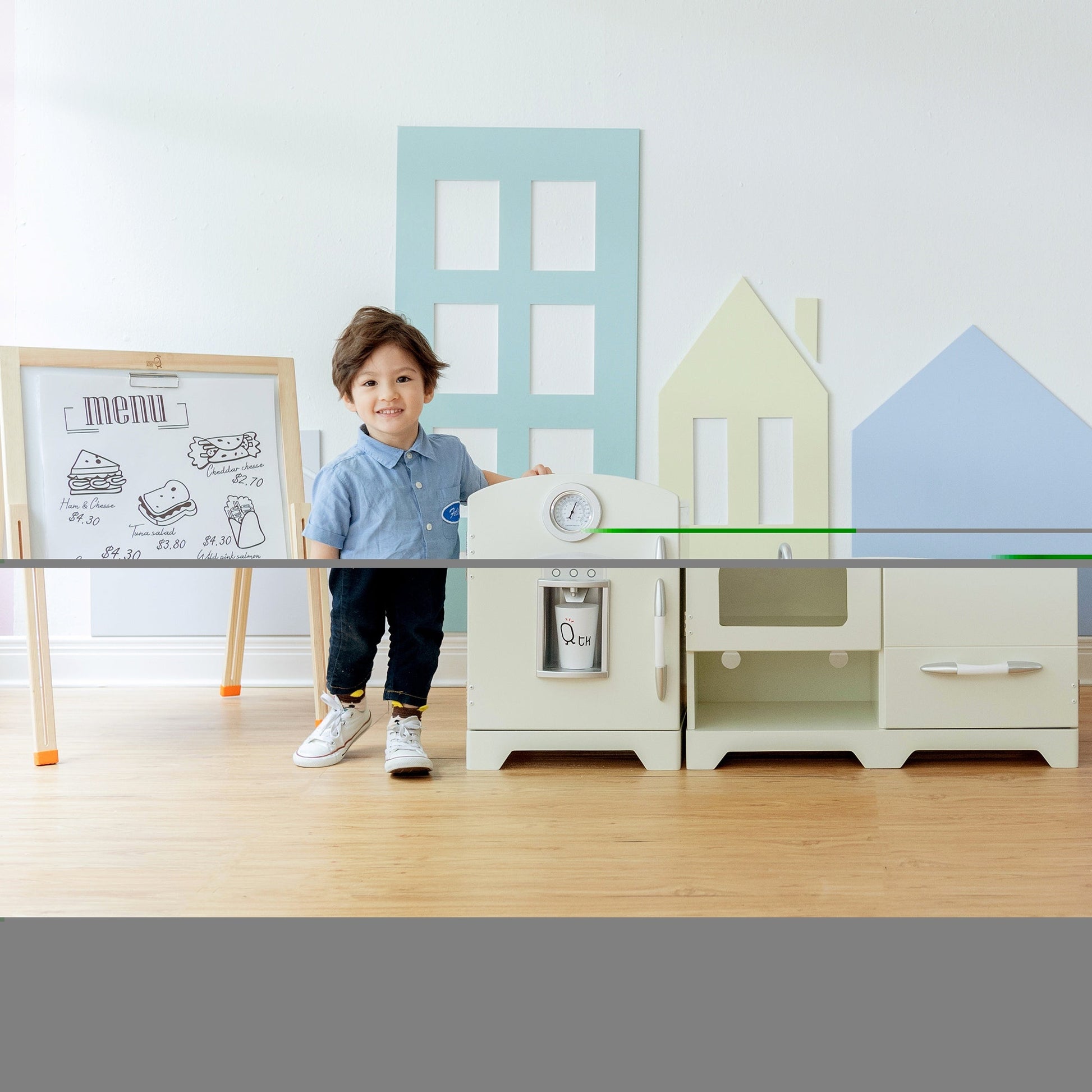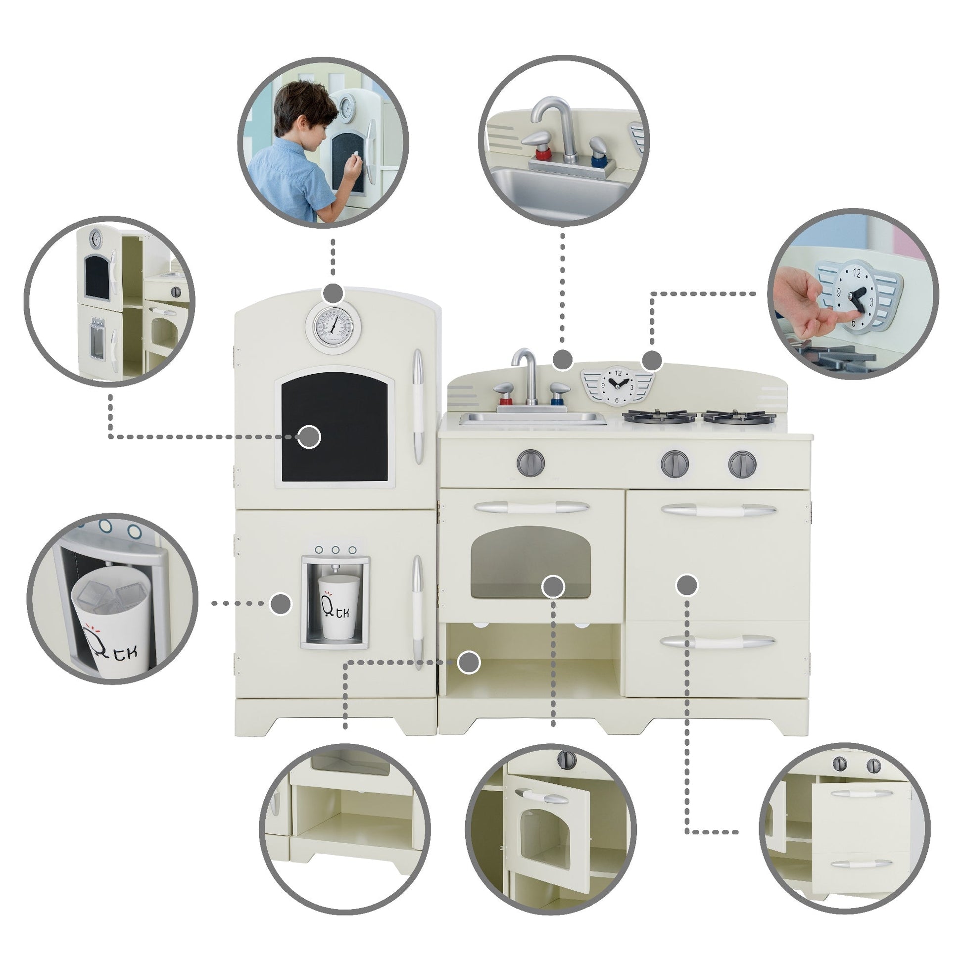 White Wooden Toy Kitchen with Fridge Freezer and Oven by TD-11413W