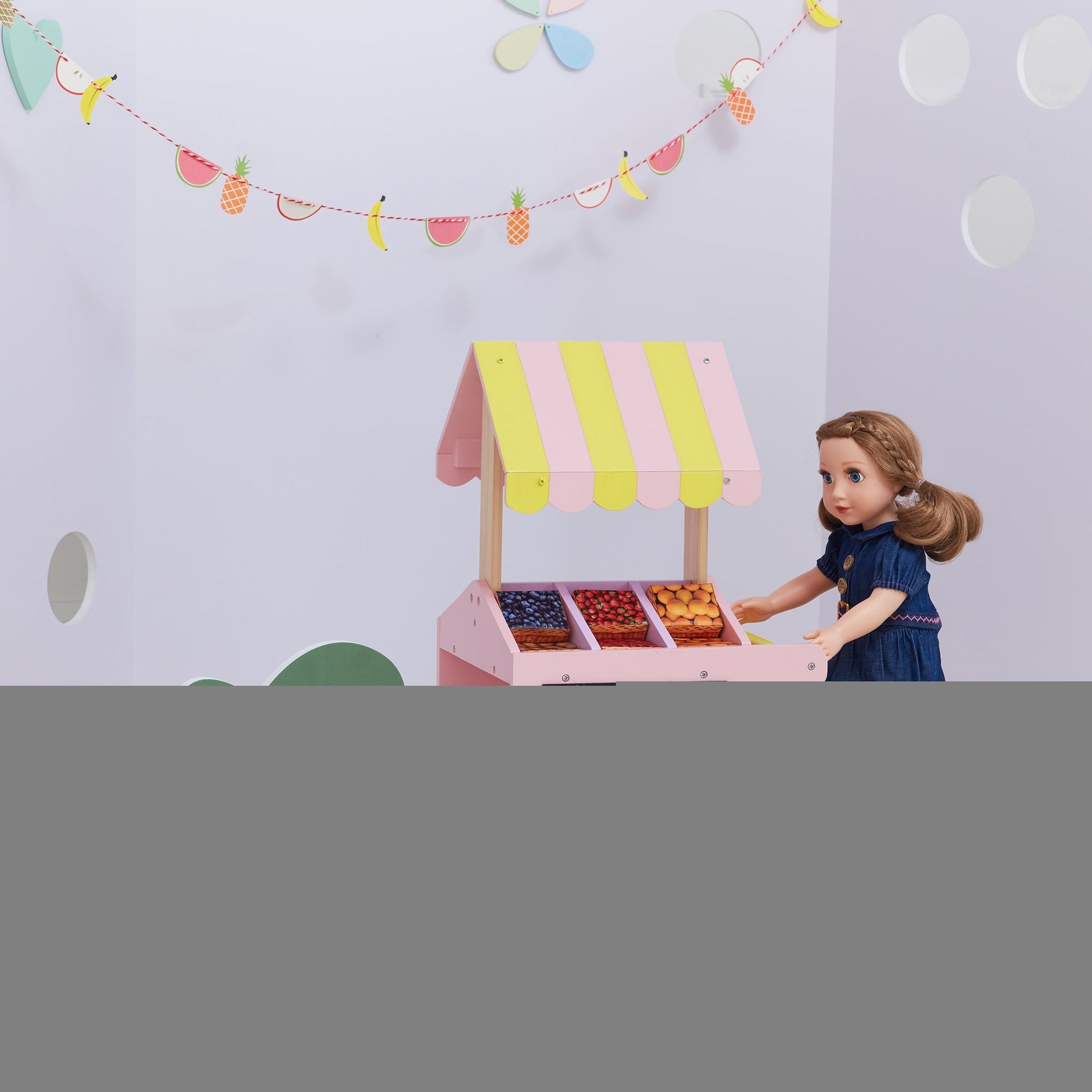 Dolls need to make a living to support their expensive traveling plans so they scouted the Nordic area and found a promising way to pay for their lifestyle. The Nordic Princess Pastry Cart with Fruit boxes is the perfect way for dolls to sell their products in the faraway land of the Nordic. The cart is a gorgeous bubblegum pink and features a coloured blocked yellow and pink awning. The cart comes with wooden wheels to make it easy for dolls to push through the cobblestone streets while they locate their next customers. Fruit box pieces included with cart. In a land far away from here, princess and princes play together in a land of make-believe. They run and play in the beautiful and unexplored Nordic World. Bold and eye-catching pieces bring this collection to life. Provide your dolls with something new and never before seen. Unveil the mystery of the Nordic World with these new and enchanting pieces today. An array of classic and chic doll furniture for your child's doll with the wide selection of finely crafted pieces from the Olivia's Little World collection. Between sturdy beds vanities trundles silky bedding and pillows there is plenty to provide your dolly with a life of luxury. This range is our fastest growing brand with items becoming increasingly more popular as a result the range is growing considerably and we now have over 60 items within the collection.
