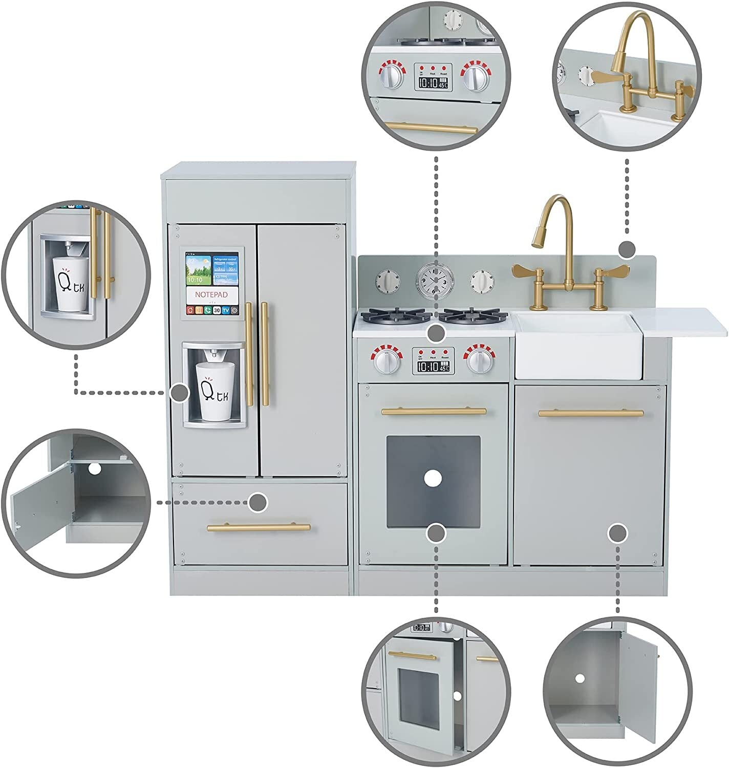 Mayfair Kids Wooden Play Kitchen & 11 Accessories Grey TD-13302C