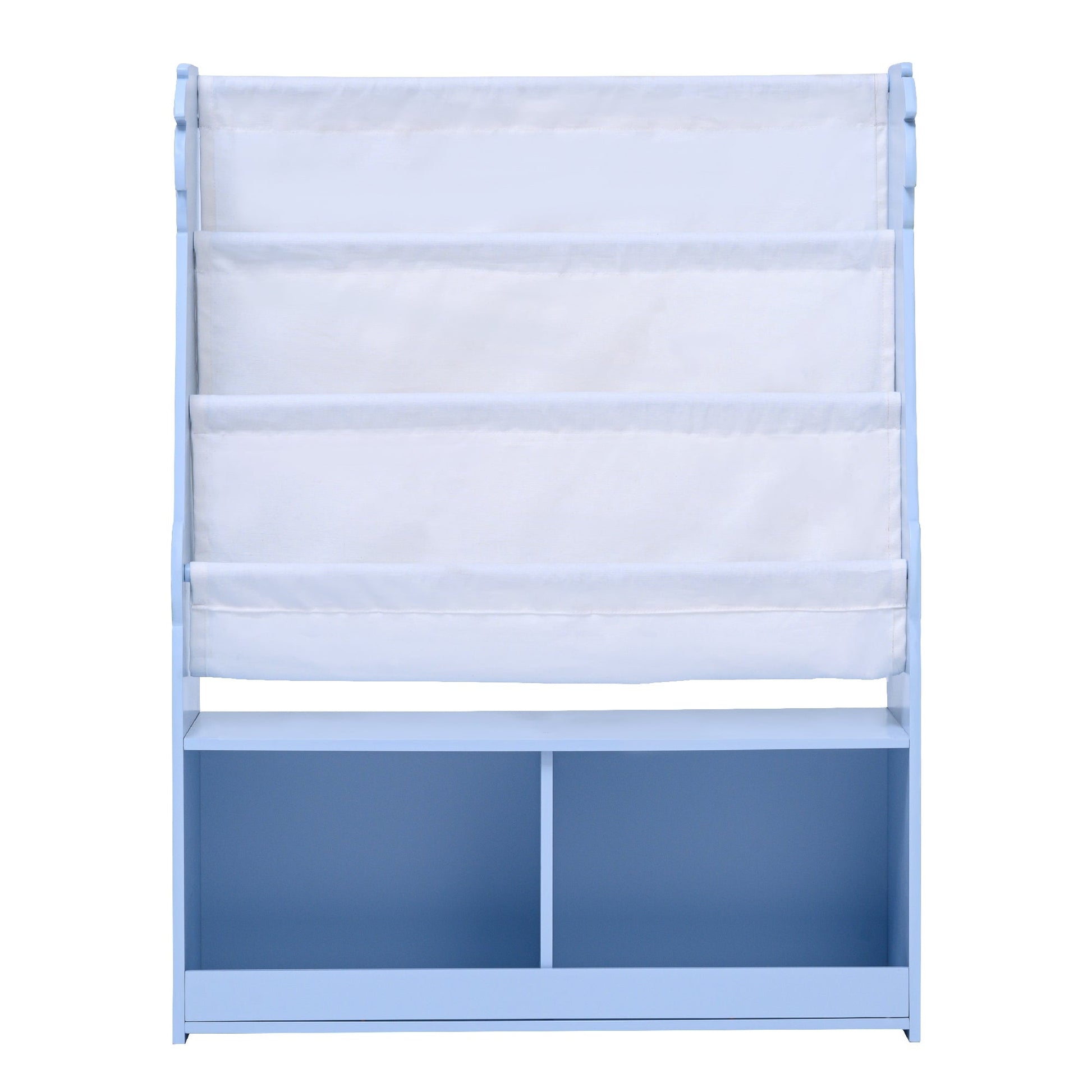 Brighten your child's play area while keeping it organized and clutter-free with the Fantasy Fields Sunny Safari Kids Wooden Display Bookcase with Storage. This colourful wooden shelving unit comes decorated with a fun display featuring friendly jungle creatures for a whimsical playroom storage solution. The 2 open shelves and 4 sling sleeves keep books organized and displayed for easy access. Purchase this bookcase on its own or with other items from the Sunny Safari collection for a bright and joyful playroom. For quick and easy assembly, step-by-step instructions are included. With a solid design constructed of sturdy wood, this organizer is built to provide long-lasting use. For convenient upkeep, the storage shelf's easy-to-clean surfaces make wiping up any spills a breeze. Send your little explorers on a jungle adventure with our most exciting Sunny Safari collection yet. Let their imaginations run wild as they trek through the trees and long grass spotting zebras, lions, monkeys and a whole host of exotic animals as they go. Each piece is lovingly hand-carved and painted designed with a child�s love of animals in mind - we only want the best for your little ones. We�ve hand-painted brightly coloured detailed animal faces who peep playfully from jungle plants and trees. All for your child�s enjoyment. Our Sunny Safari design is the perfect addition to any child�s bedroom who loves fun and adventure!