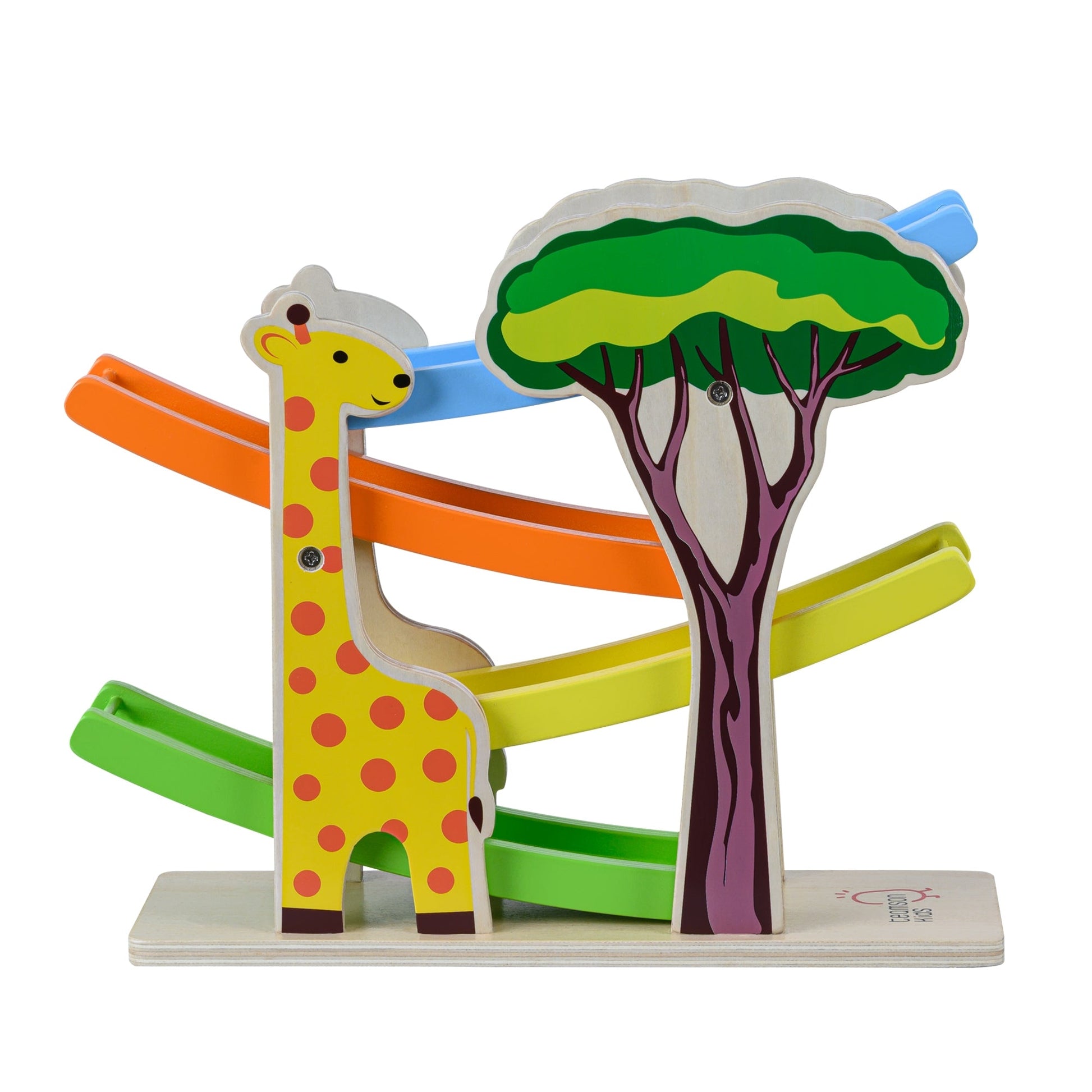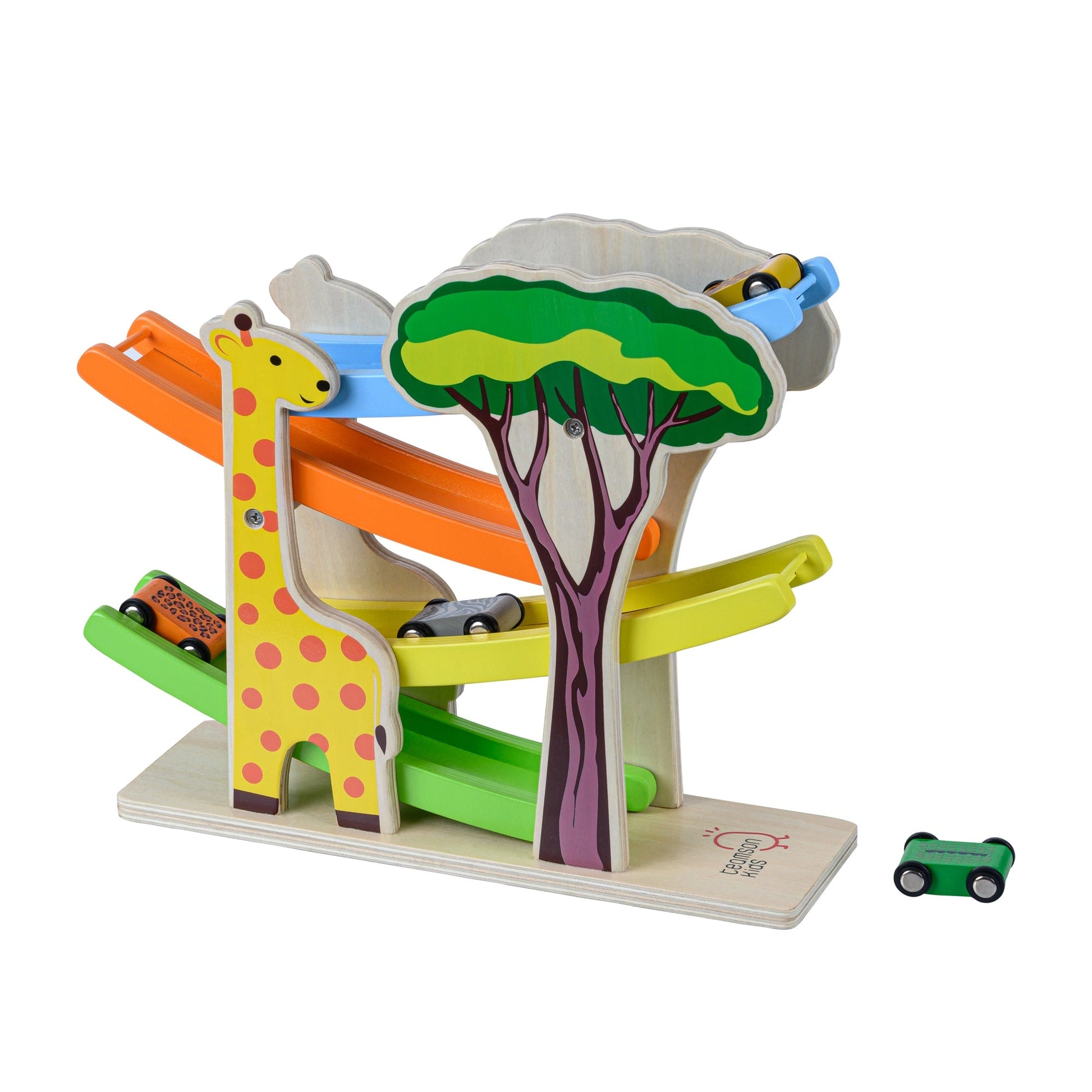 Wooden Ramp Racer Toy Click Clack Playset & 4 Safari Cars PS-T0007