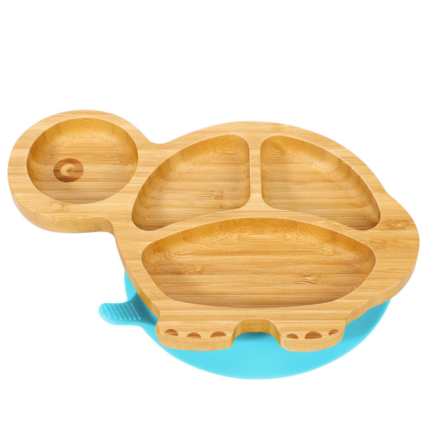 Bamboo Turtle Plate Bowl & Spoon Set Suction Bowl Stay-Put Design - BLUE