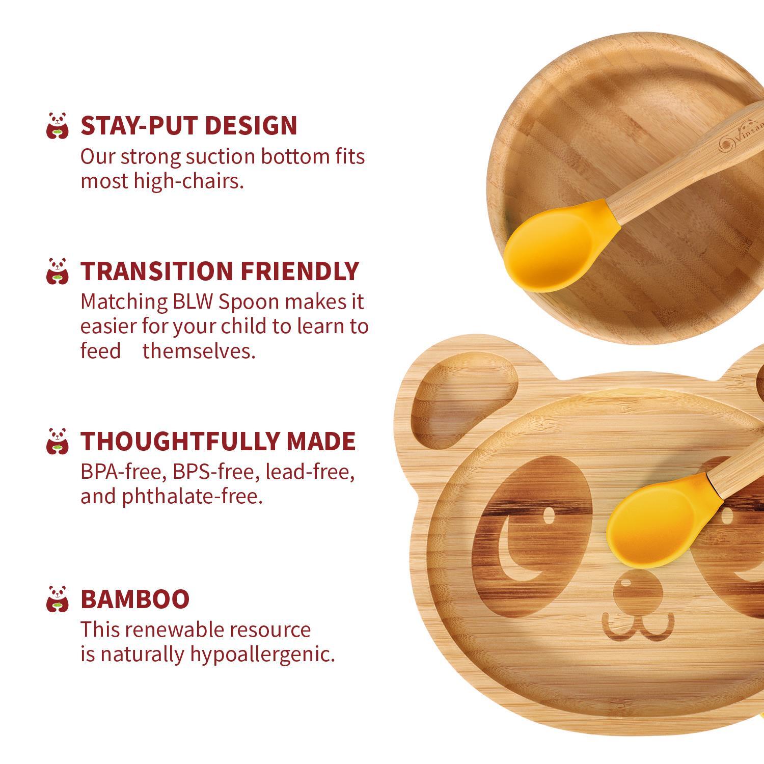 ALL-NATURAL BAMBOO: Made from all-natural hypoallergenic bamboo and food-grade silicone to protect your child from BPA, phthalates, and other toxins.