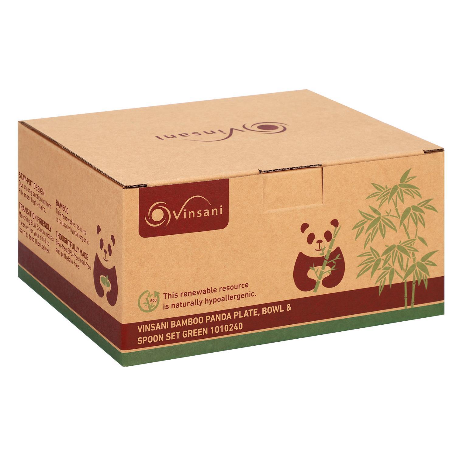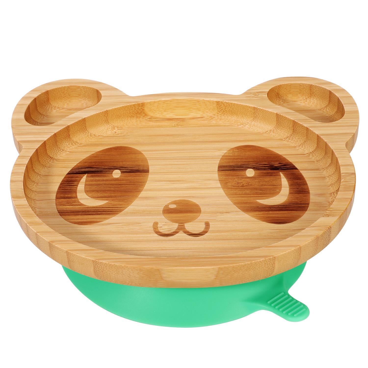 Bamboo Panda Plate Bowl & Spoon Set Suction Stay-Put Design (Green)