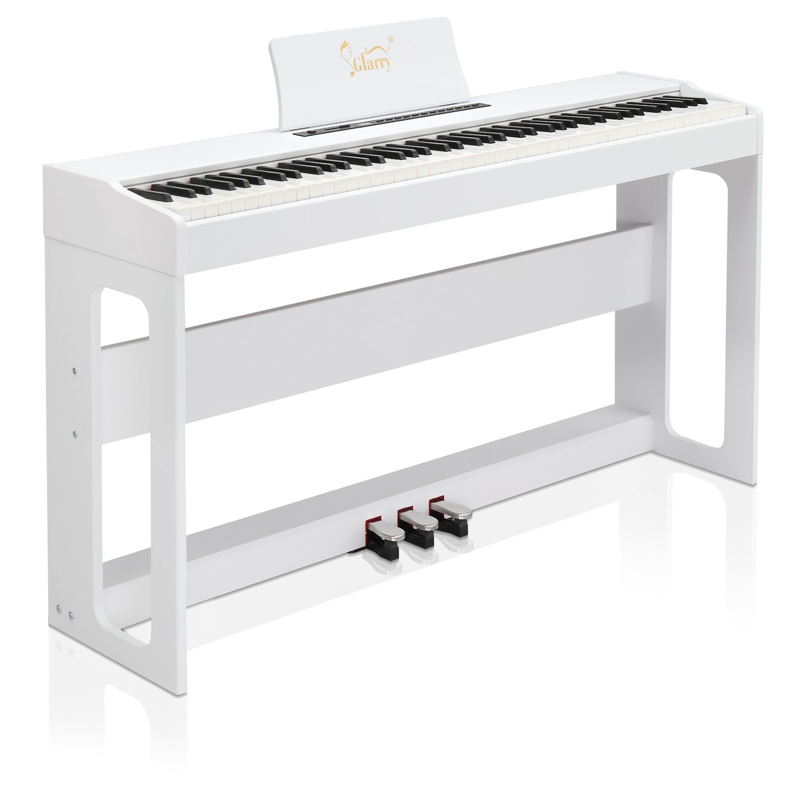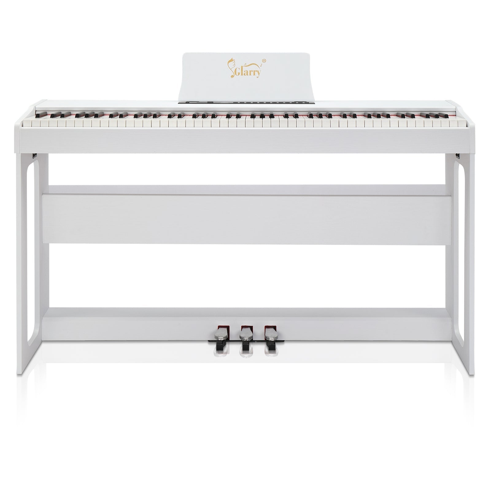 Glarry GDP-104 88 Keys Full Weighted Keyboards Digital Piano with Furniture Stand, Power Adapter, Triple Pedals, Headphone, for All Experience Levels White