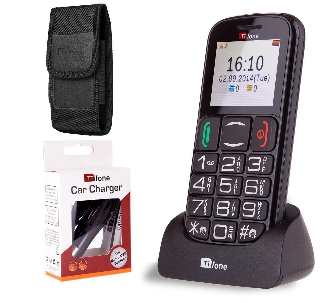 TT200 Mercury 2 Big Button Basic Senior Mobile Phone CB4 Nylon Holster Case, In Car Charger & Vodafone PAYG Sim Card