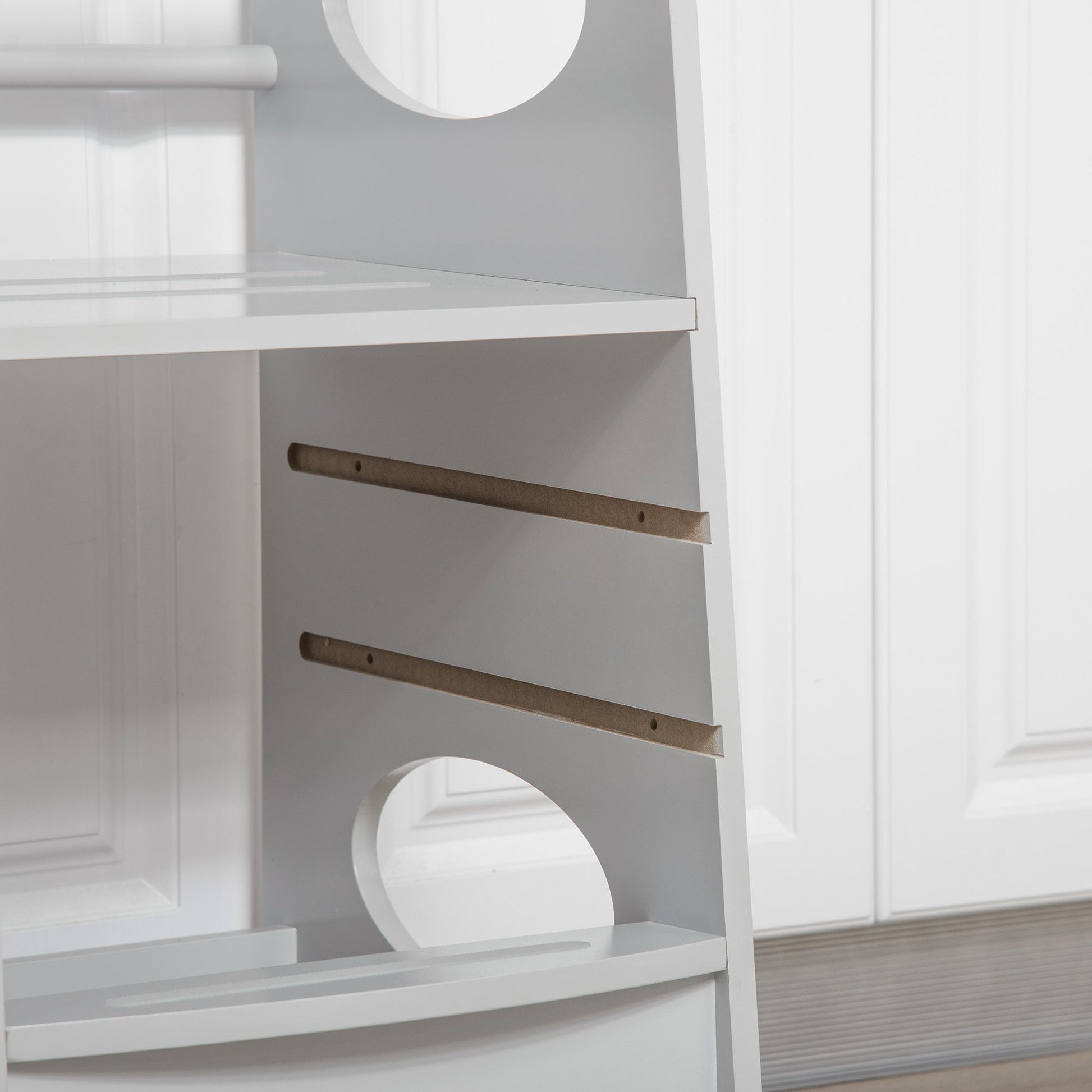 ADJUSTABLE PLATFORM DESIGN: The footboard is removable to adjust in 3 levels on your kids' preference. A wonderful standing tower for kids who are learning to help in the kitchen.SUITABLE FOR MANY OCCASIONS: The kids standing tower is pretty helpful and ideal for many occasions such as kitchen, washroom, and dining room to cultivate children's good habits of independence.SAFE MATERIAL & STURDY: Made of MDF, the step stool for children has no unpleasant odor. Trapezoid structure enhances the stability and balance of this toddler stool.SECURE SUPPORT: The considerate guardrails and handrails provide perfect support when your children inside, so kids won't fall out of high place.PRODUCT INFORMATION: Overall dimension: 40L x 50W x 90H cm. Suitable for kids 3-6 years old. Weight capacity: 50kg.