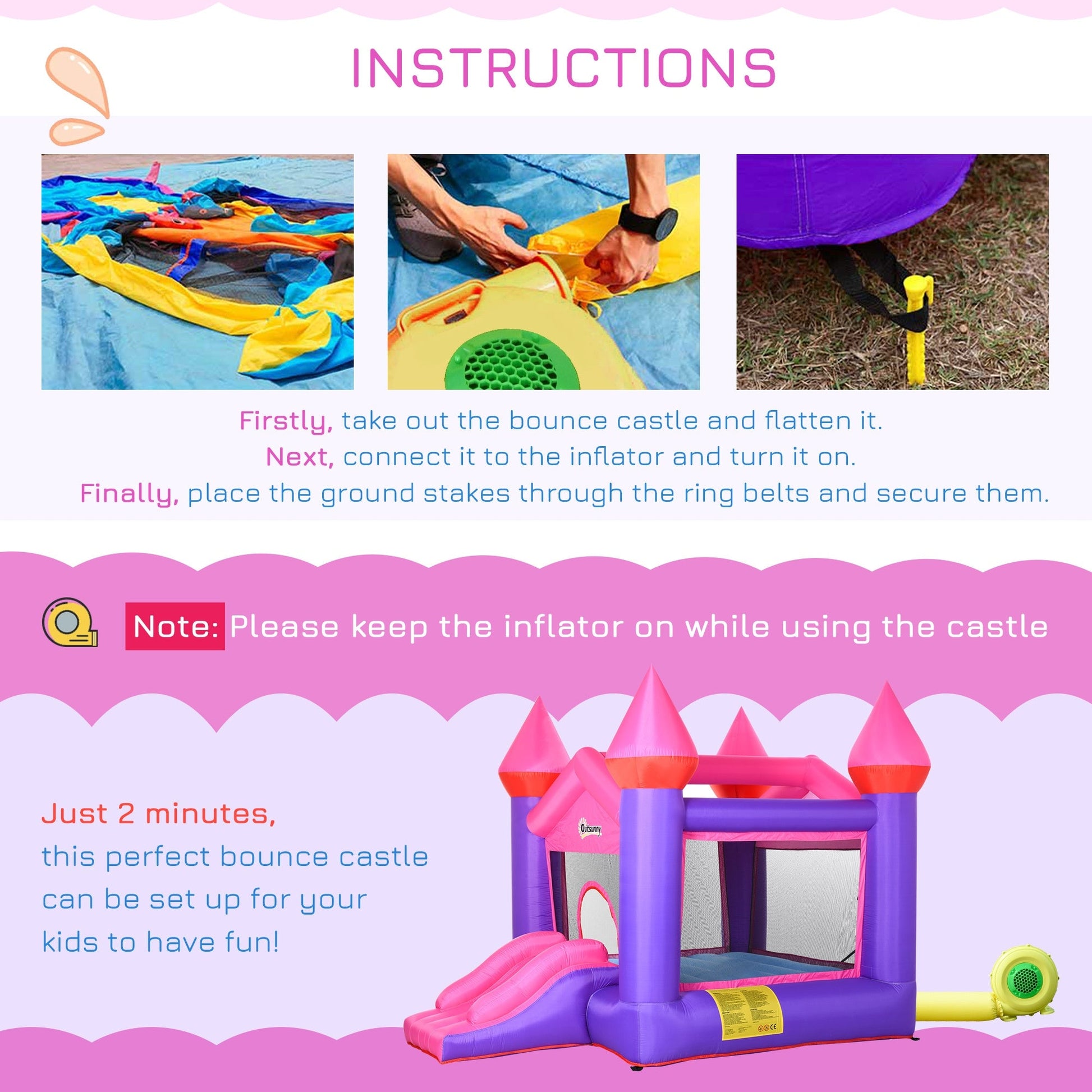 Bouncy Castle With Slide Inflatable Trampoline w/ Blower Multi-color