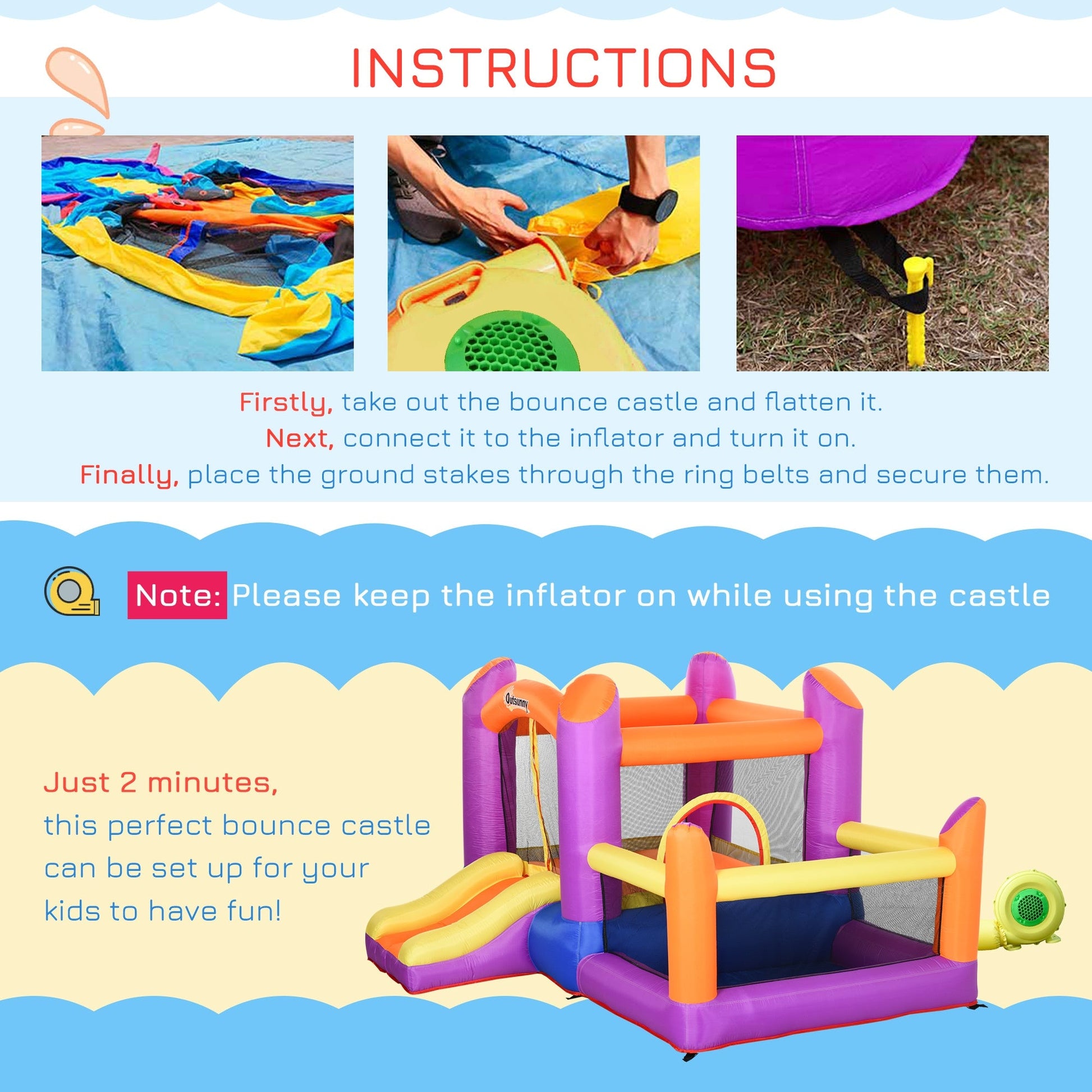 Bouncy Castle with Slide Pool House Inflatable w/ Blower Multi-color Outsunny