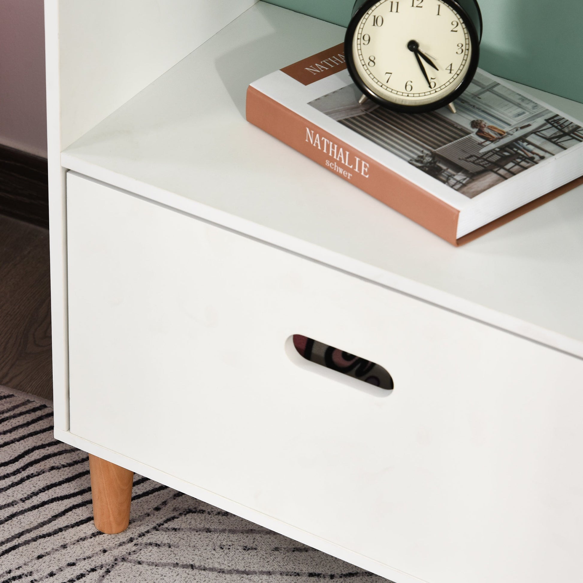 142x50cm Child's Rocket Bookshelf w/ 3 Shelves Drawer Wood Legs White