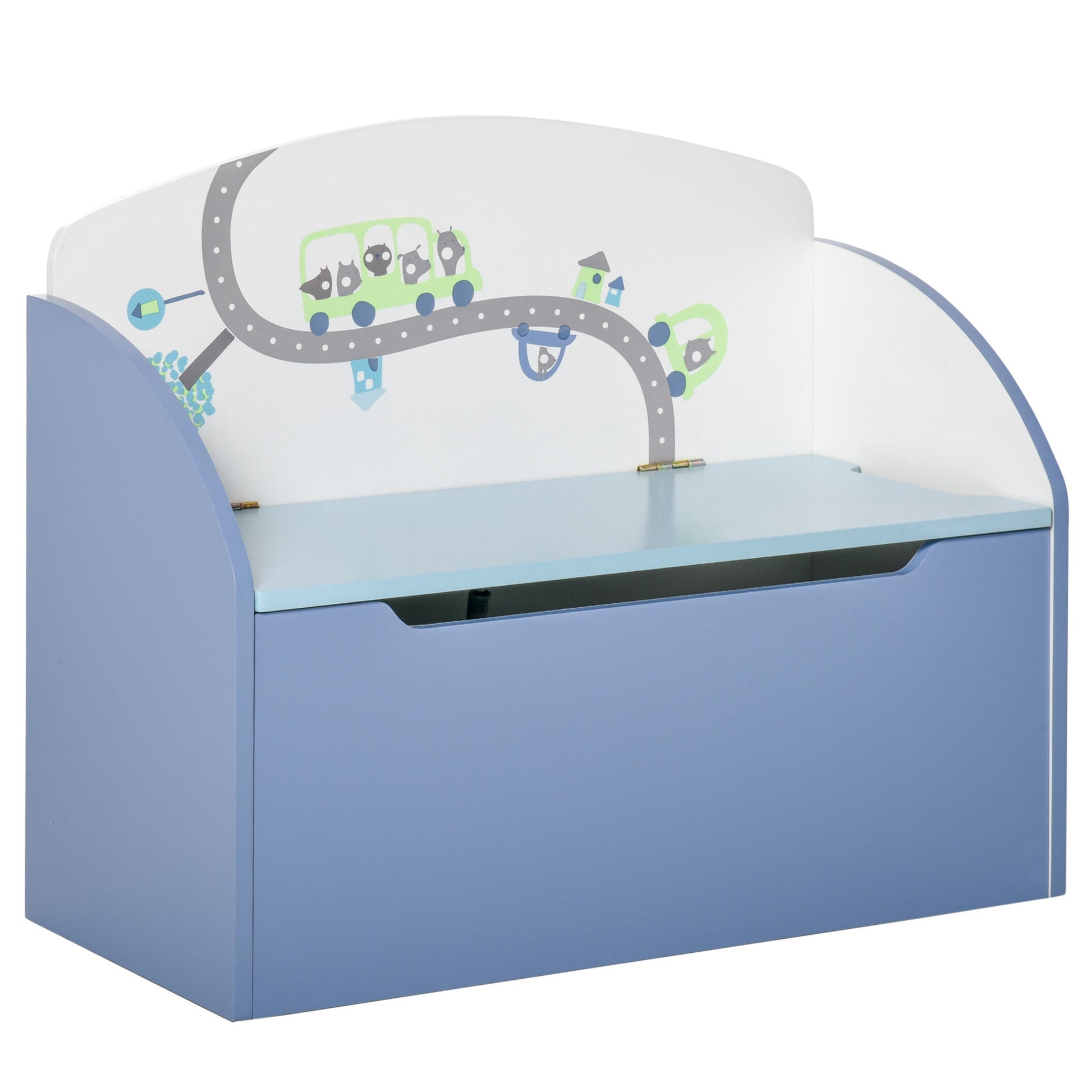 Kids Wooden Toy Box Children Storage Chest Bench Organiser Bedroom Blue HOMCOM
