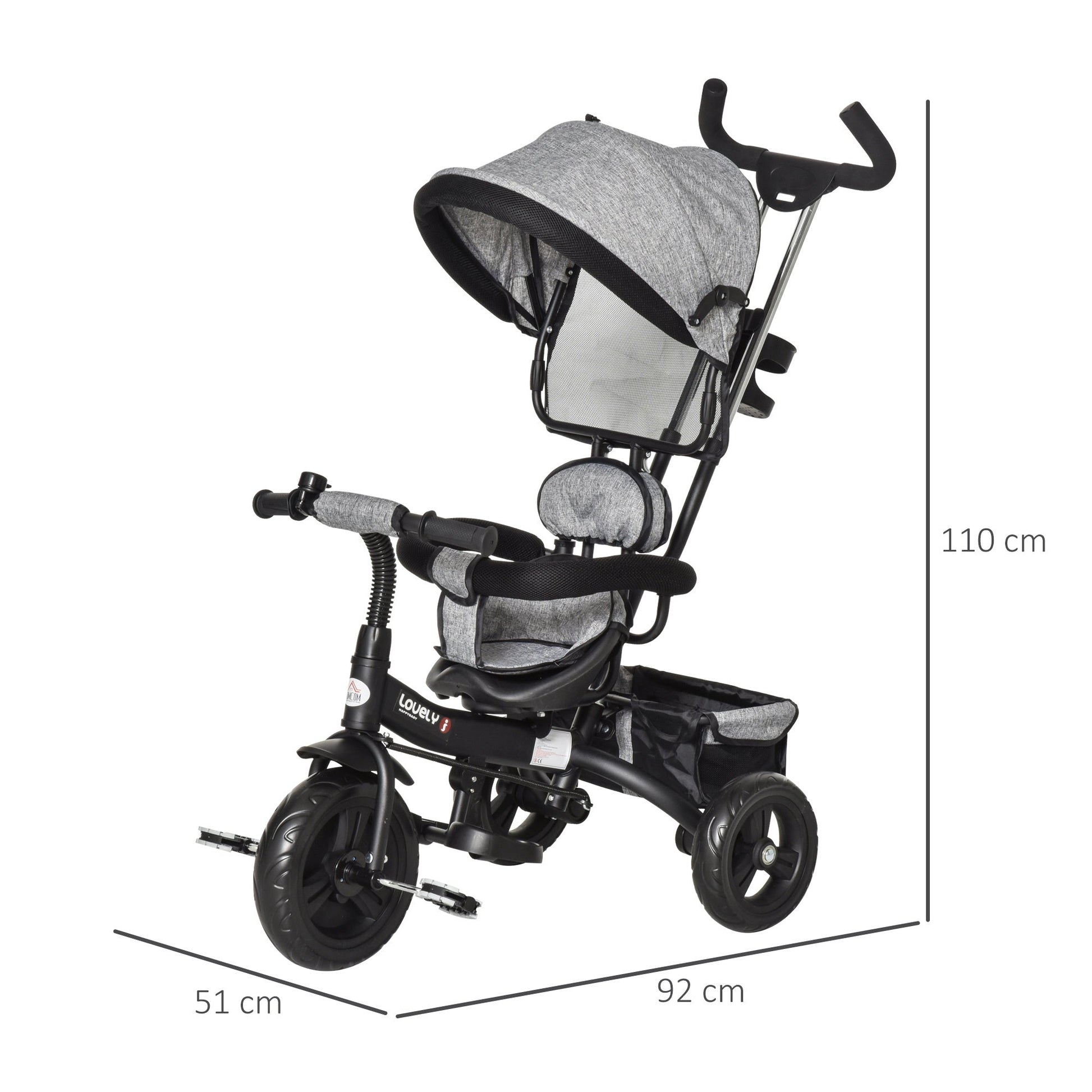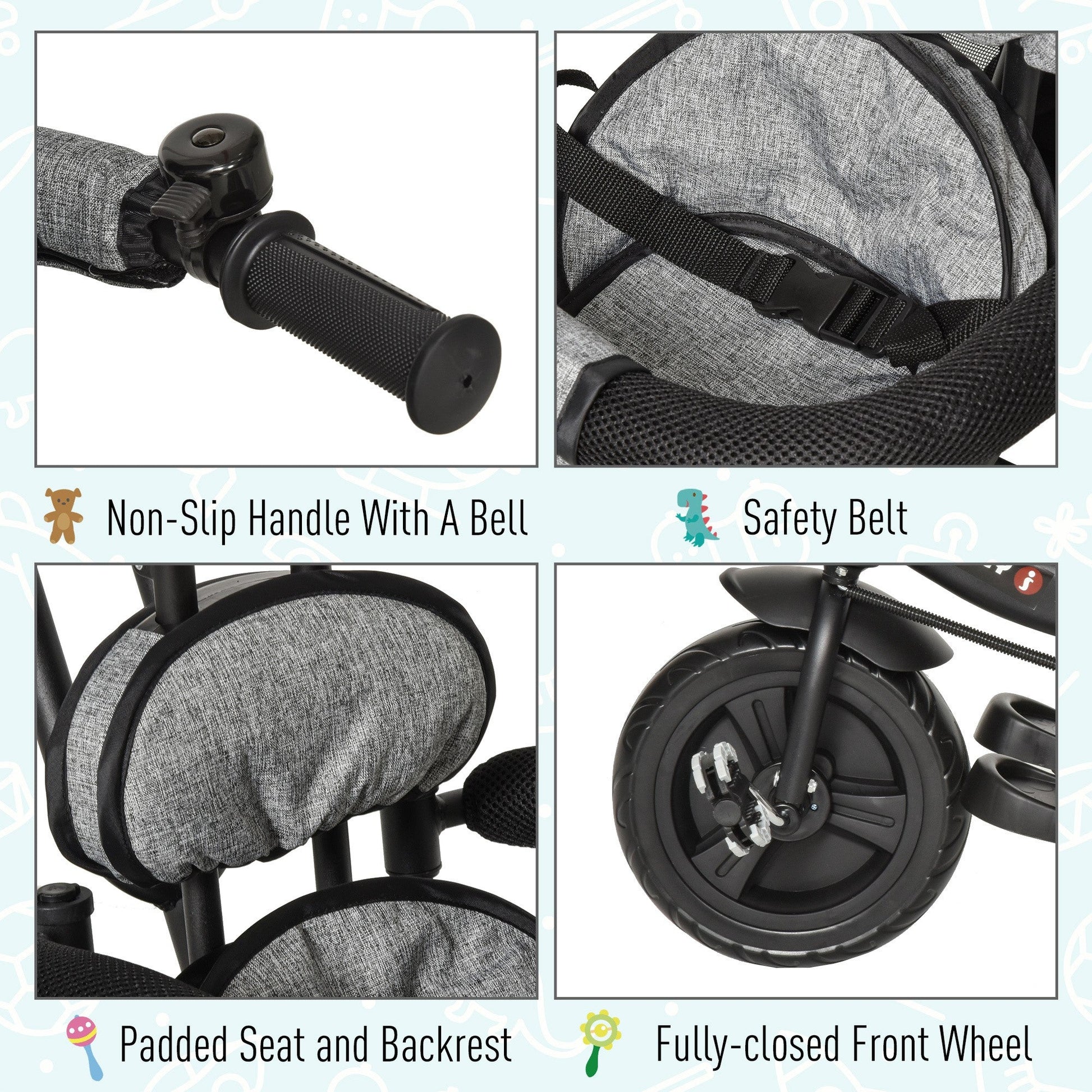 3 in 1 Kids Tricycle Pedal Push Trike with Canopy, Parent Handle Grey HOMCOM