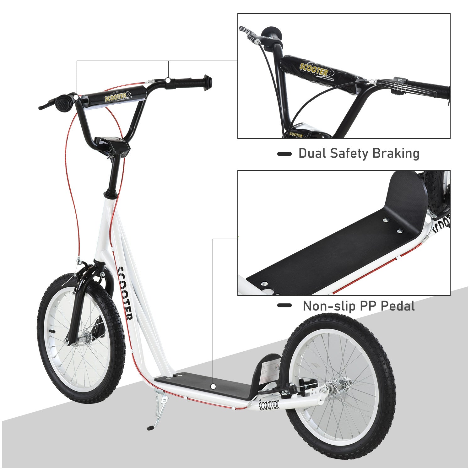 HOMCOM 90-96cm Kids Kick Scooter Adjustable Handlebar Inflatable Wheels White