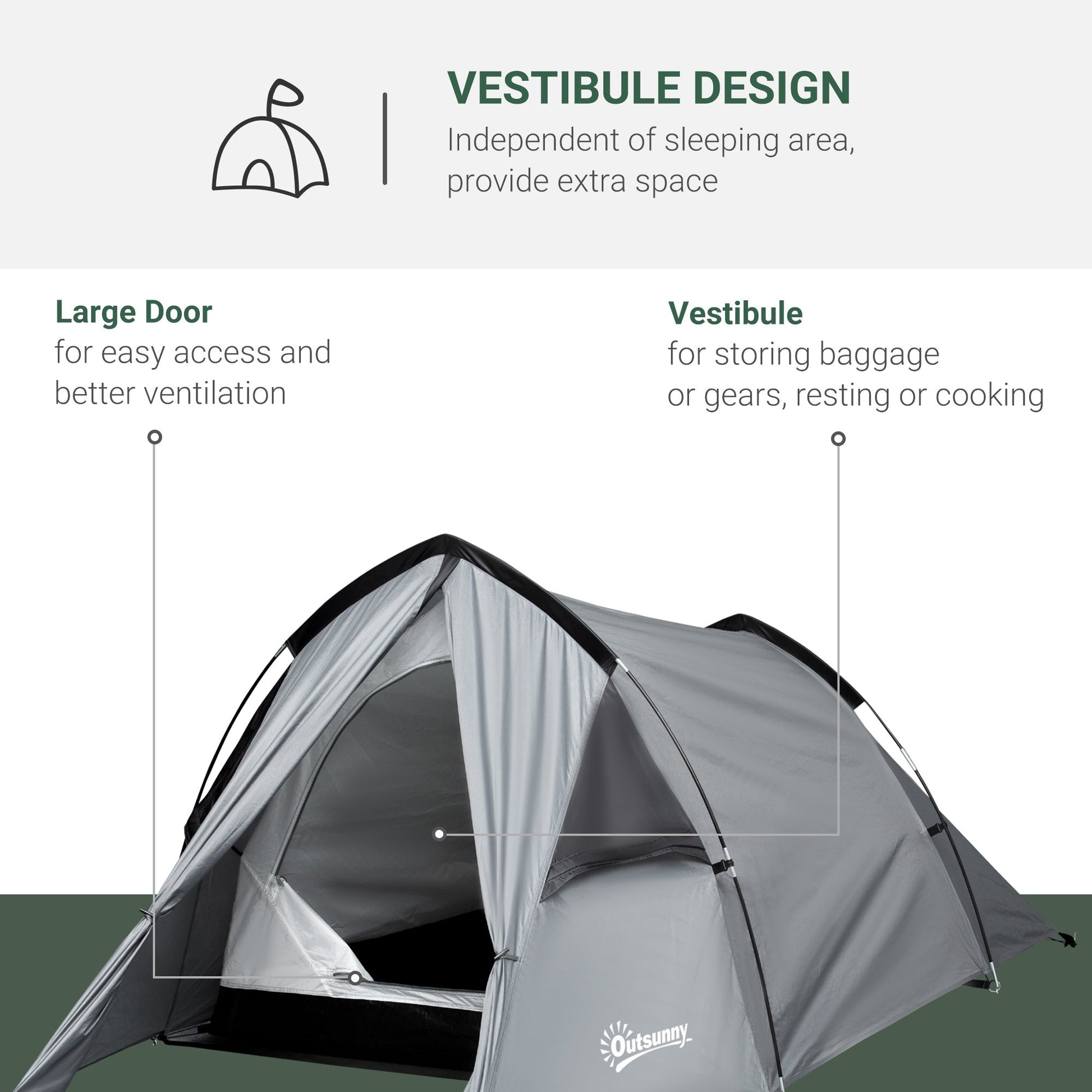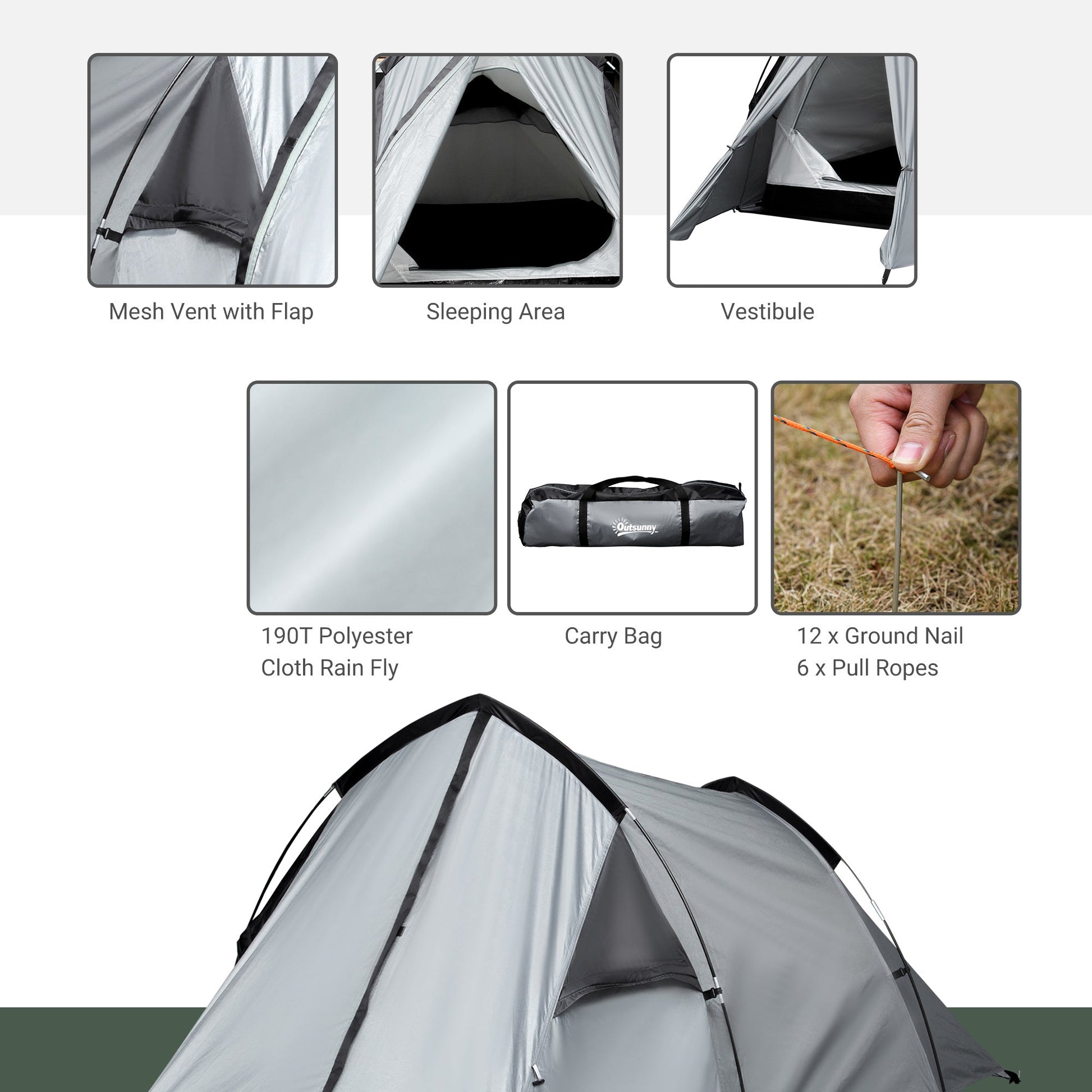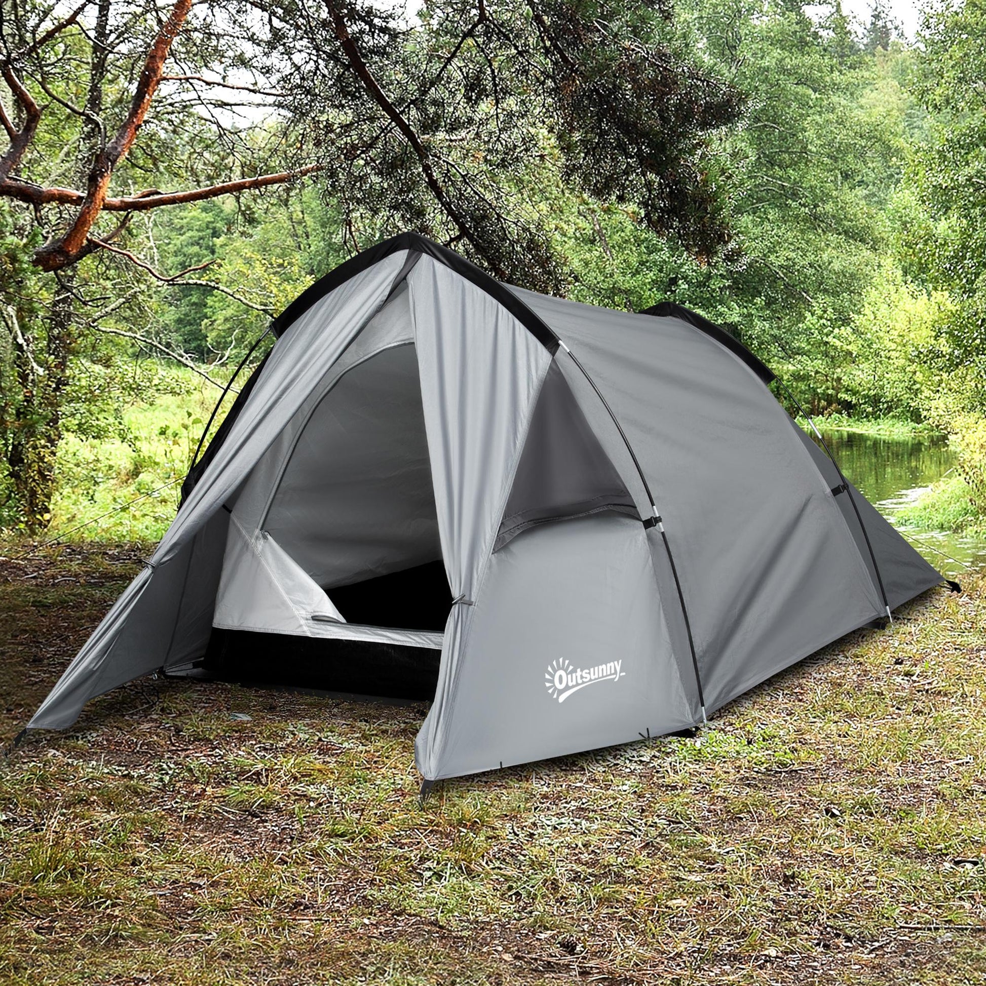 1-2 Man Camping Dome Tent Porch Mesh Window Double Layer Hiking Outsunny