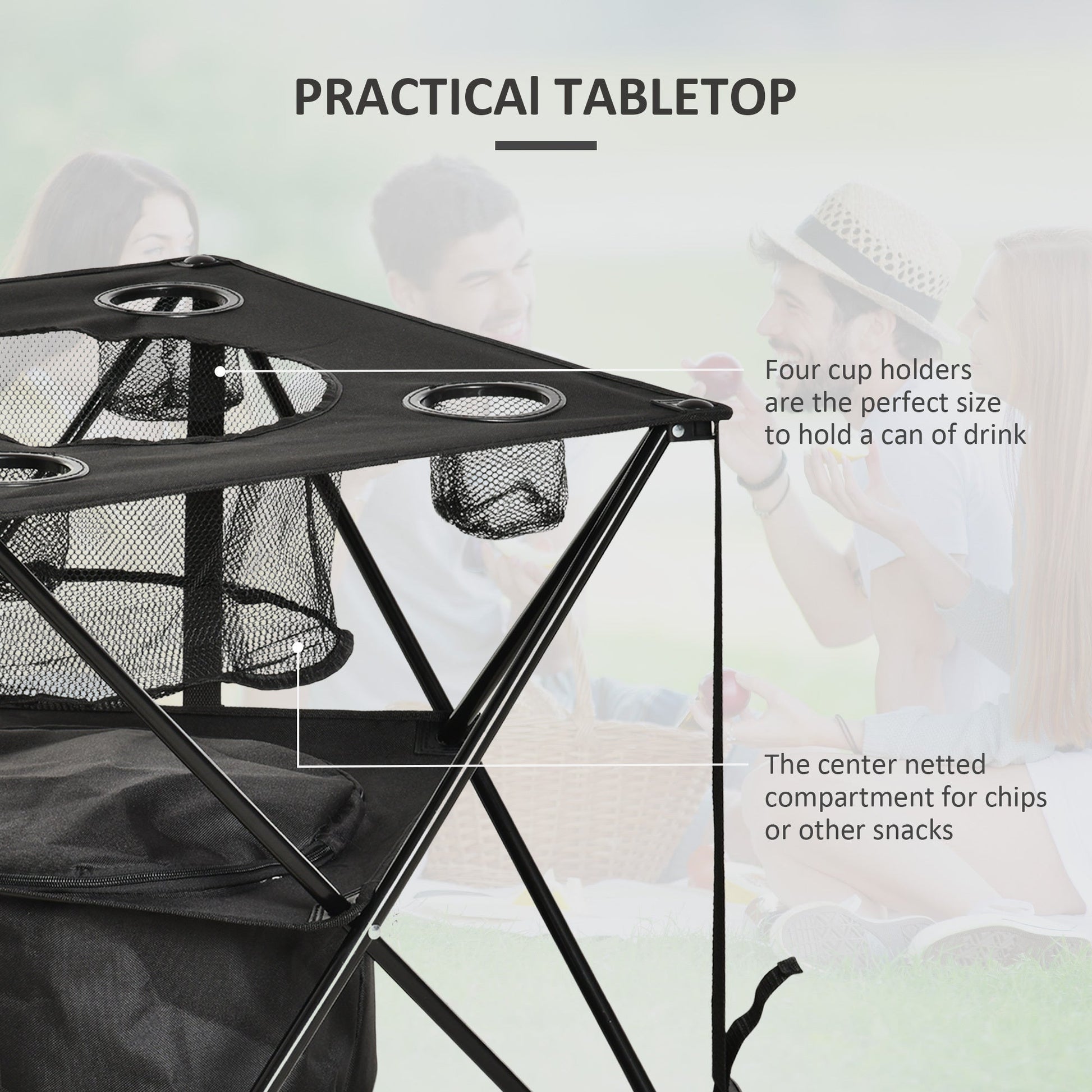Folding Camping Table Picnic Table w/ Built-in Cooler & Carry Bag Outsunny