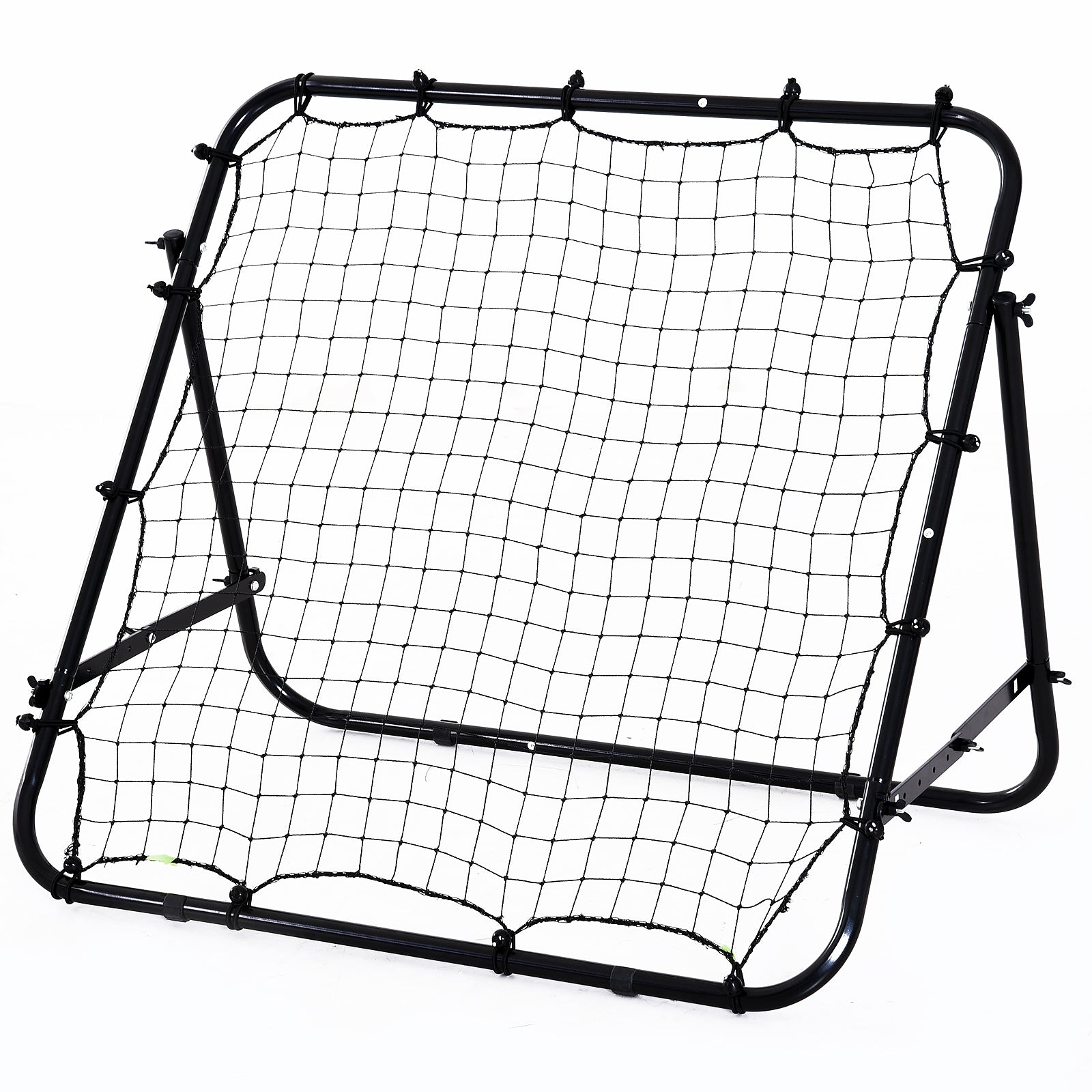 Whether you��re a beginner or professional, this Football rebounder net from HOMCOM is perfect for sharpening up your skills, building strength and improving confidence. Made using steel, the frame has been built to last for years of practise, supporting the weather-resistant net via 20 elastic cords that aid in handling the impact when the ball hits. Adjustable at the back, the net can be set to suit you and its ability to reflect the ball back at various angles is great for developing your skills and pushing you further and making you more confident playing matches. Lightweight, easy to carry and foldable, this net can be stored and taken anywhere with ease, making it great for use by anyone of any age.