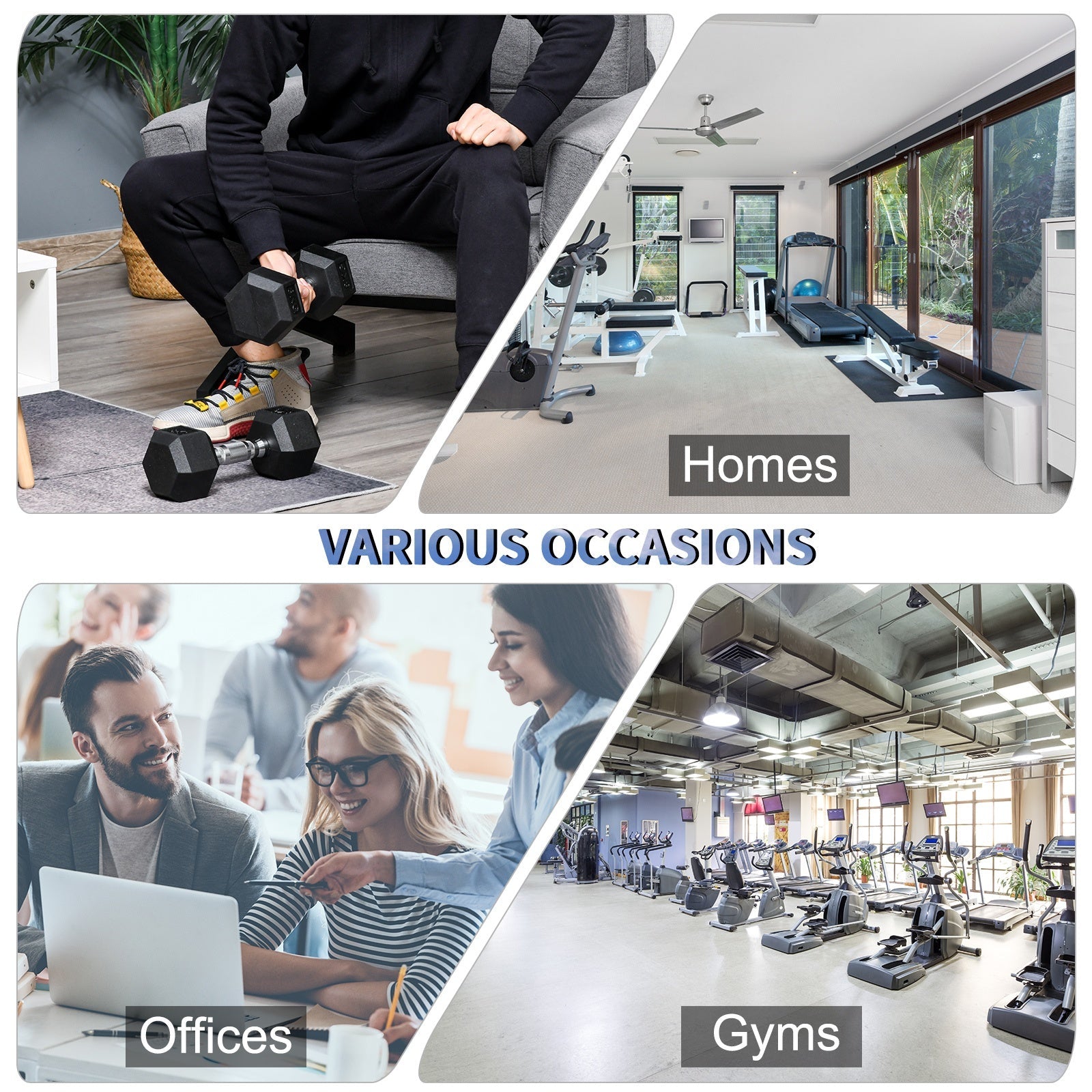 This pair of hexagon dumbbells with rubber is perfect for your fitness regime, suitable for home, gym and office exercise. Each weight is built with metal and rubber, which is durable and not easy to scratch the floor. The knurl guarantees your safety when you do alternating dumbbell curl, overhead shrug, dumbbell triceps kickback, etc. It's an ideal way to make exercise routine with the dumbbells.