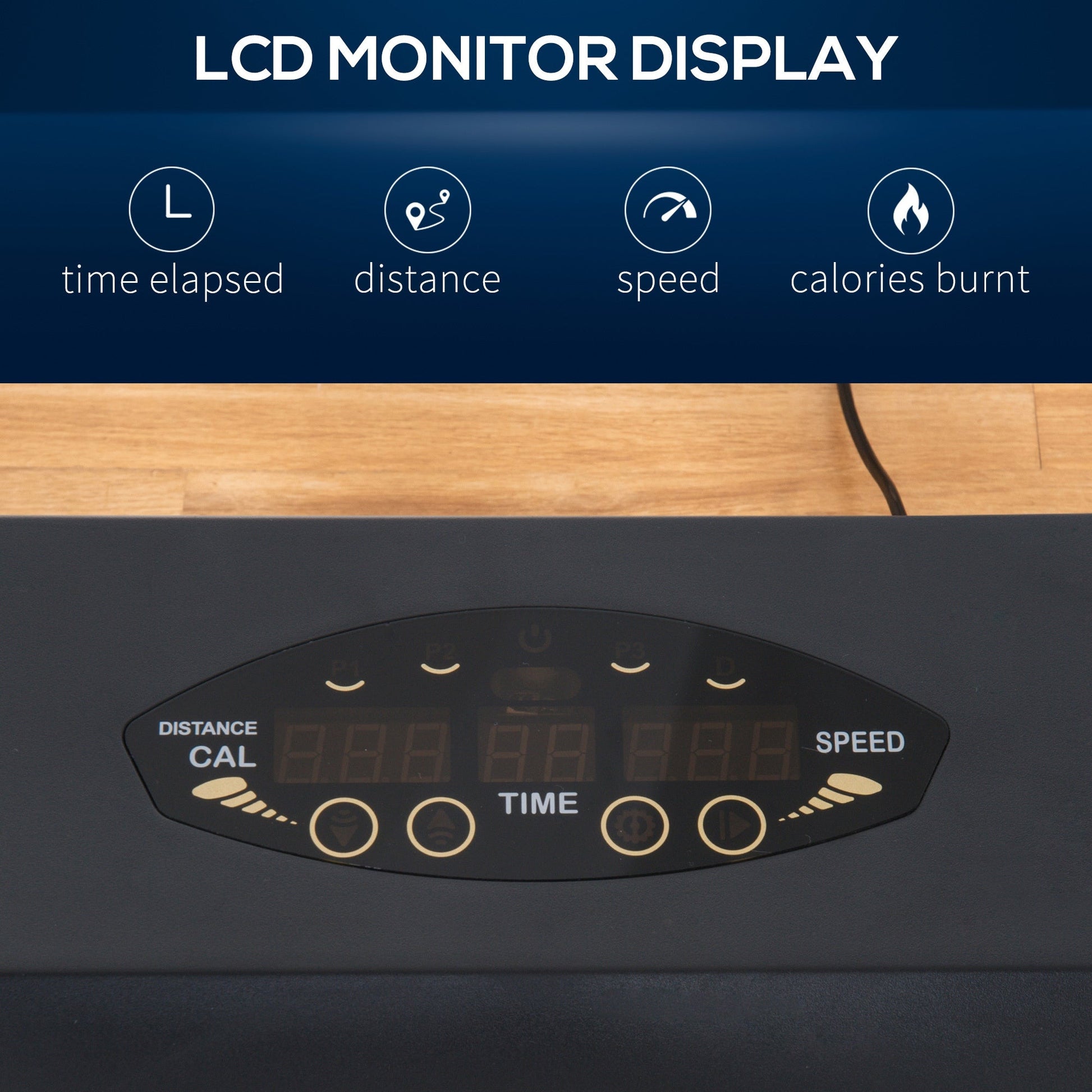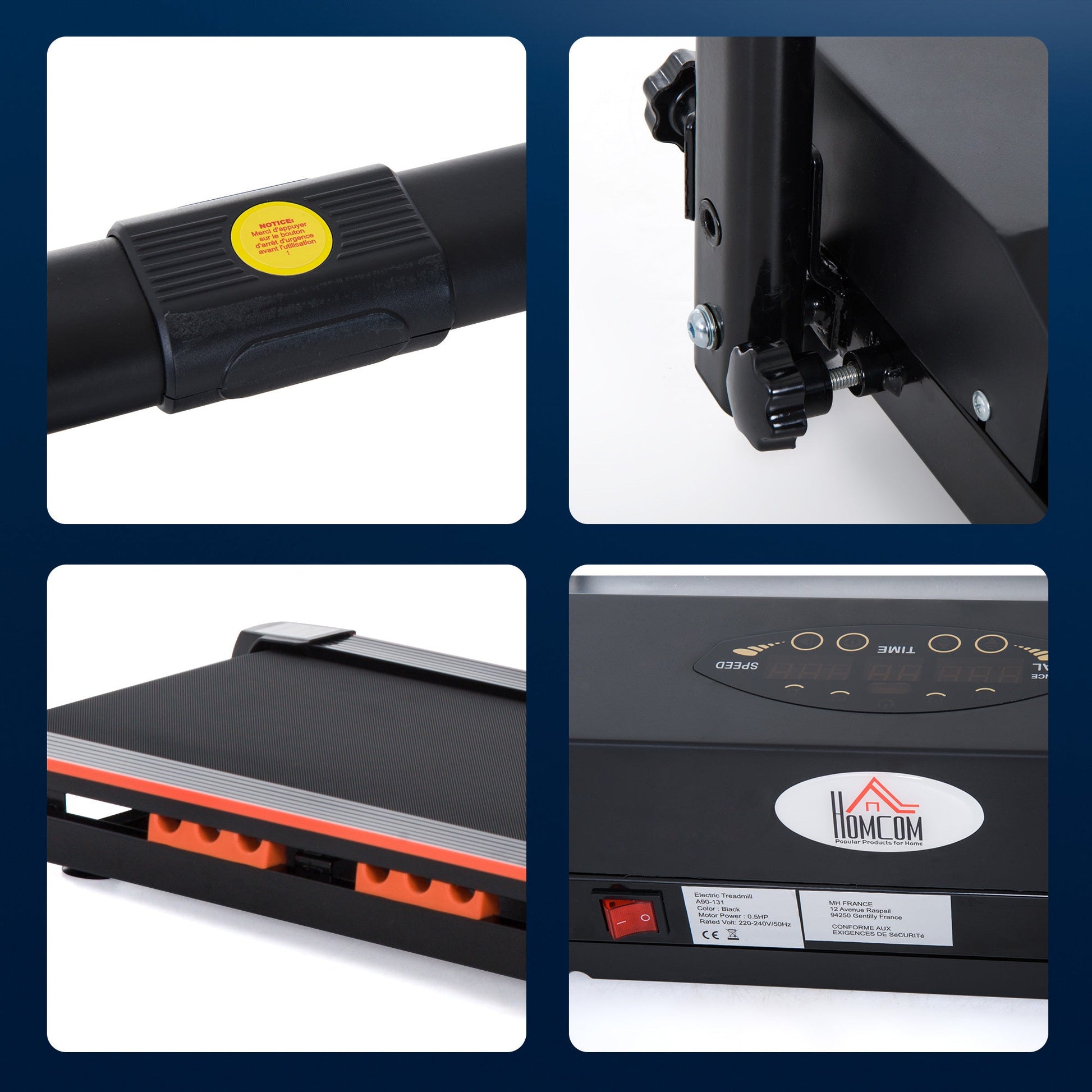 Get your fitness into gear with this treadmill from HOMCOM, it helps you to get fit and increase your stamina. The LCD monitor on the front can also track your time elapsed, distance, speed and calories burnt, which will keep you more focused whilst working out. It is finished with an emergency button and safety key which immediately stops it moving when pressed from safety. The treadmill can also be fold and is equipped with two wheels so that it is easy for storage when not in use. A must-have for when you��re stuck indoors and want to keep active.