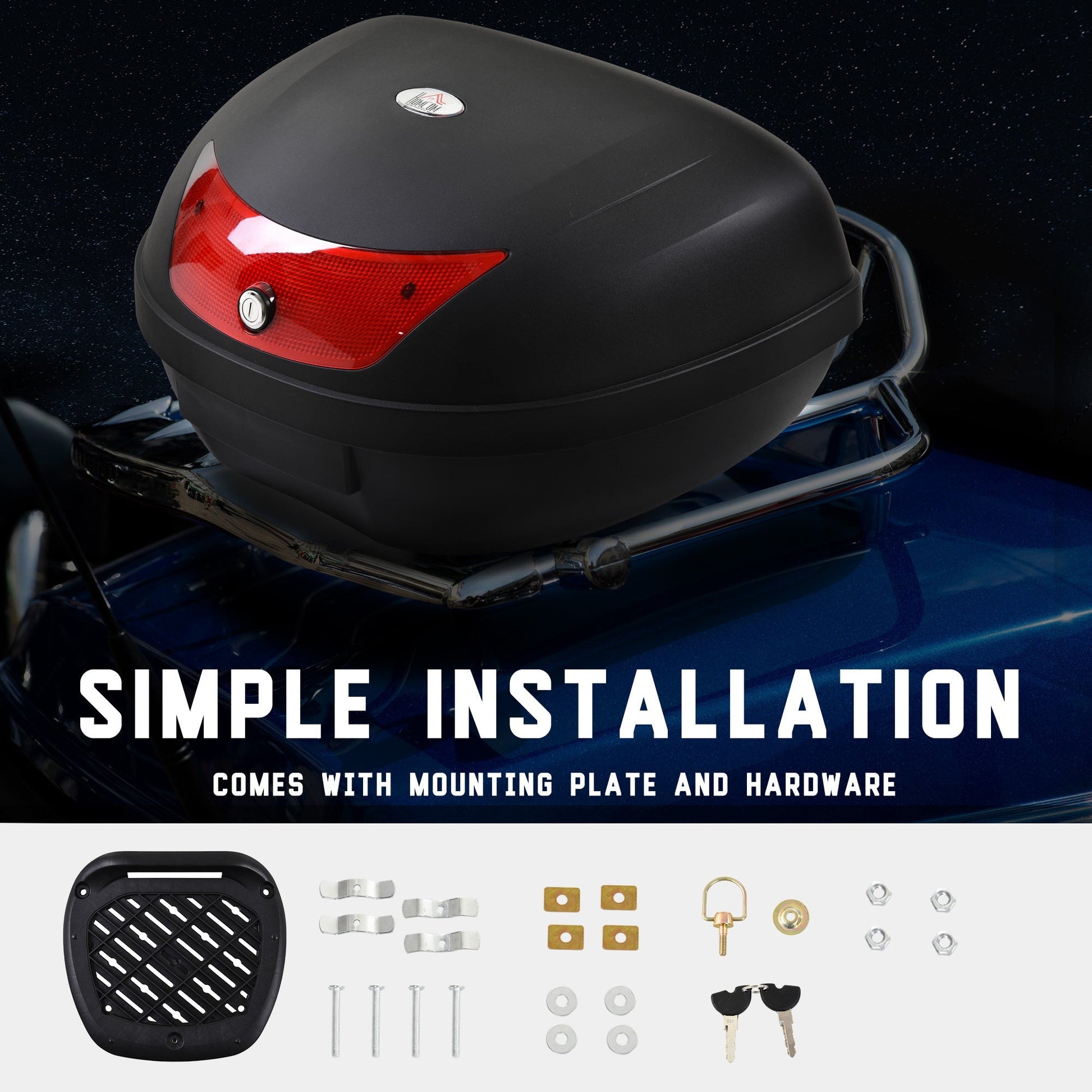 HOMCOM motorcycle trunk is specially designed for motorcycle riders, which is used to put their belongings when they travel. Besides the daily water cup, wallet, etc., with a large capacity of 48L, it can also put down your helmet. So you don't have to hold a heavy helmet in your hand anymore. The red reflective strip at the back of the suitcase, 2 keys and all kinds of related accessories are ready for you. You just need to buy it home and use it easily.