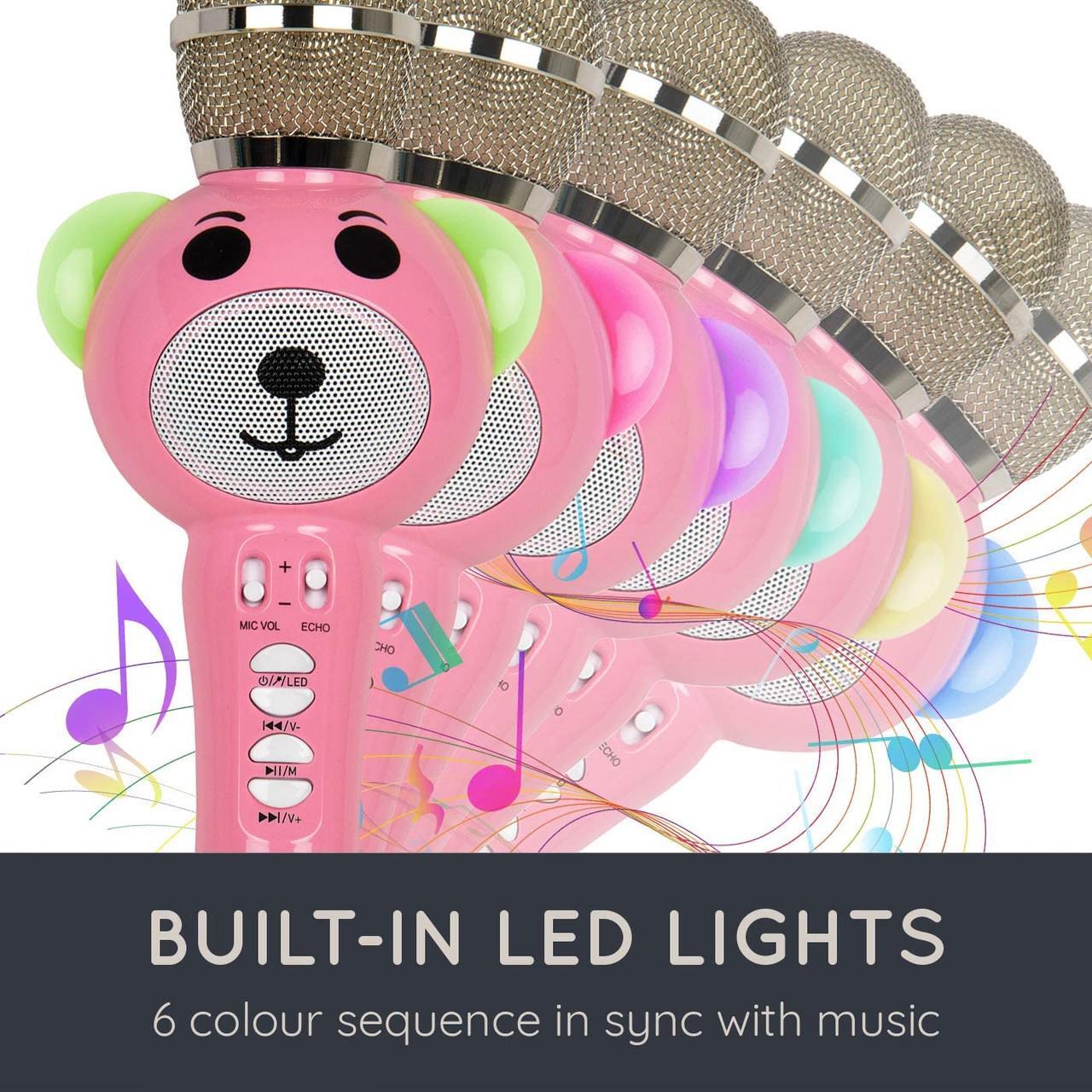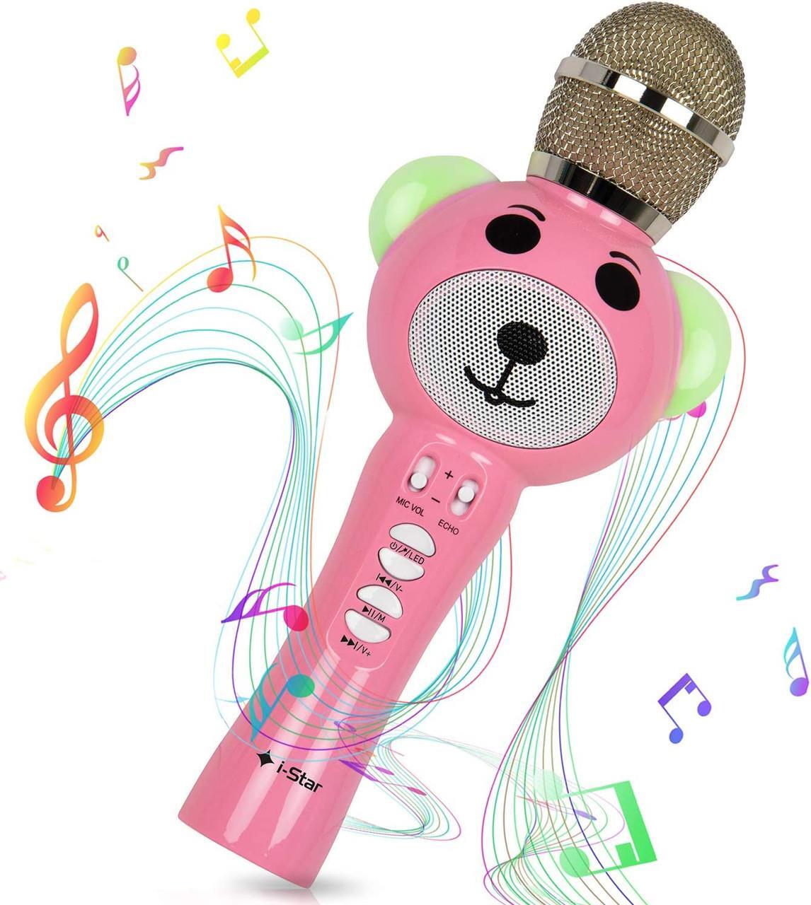 Easy to set up and great sounding high-quality 5W karaoke microphone for children. Send MP3 backing tracks from your mobile, tablet or any other Bluetooth-enabled audio device to the built-in speaker and sing along. Ideal for parties, family evenings and special occasions. Your perfect portable alternative to bulky karaoke machines.As well as fully adjustable volume, echo and reverb settings, the iStar Karaoke Microphone features 4 magic voice changing effects to transform your voice into unique and entertaining styles to entertain kids for hours.Features:LED LIGHT EFFECTSPORTABLE AND COMPACTBUY WITH CONFIDENCE