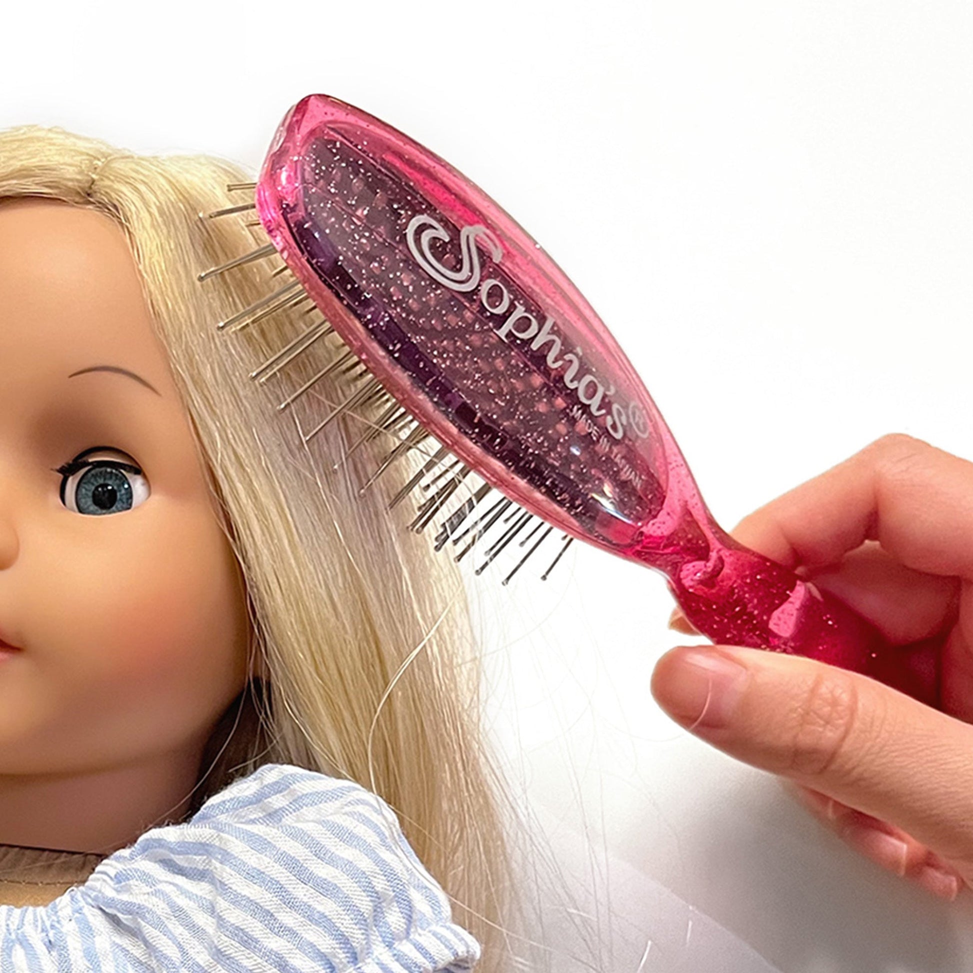 18" Baby Doll Brush in Pink Glitter, Wire Hair Brush for Dolls, Pretend Play Toy