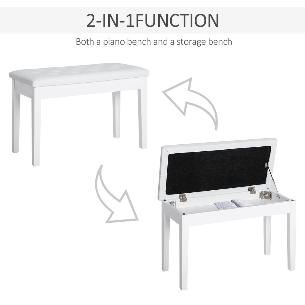 Under-seat storage: Piano stool comes with handy space for keeping sheet music and accessories.Two-person size: Great for solo piano playing and also performing a duet. Double size is also great when teaching lessons.Retro look: Bench comes in a top tufted design, with faux leather upholstery - a cool piece for your home and office.Wooden frame: A strong structure, which supports when being used. Faux leather upholstery is smooth and can be wiped clean.Dimensions: 50H x 76L x 36Wcm. Maximum load 200kg. Assembly required.