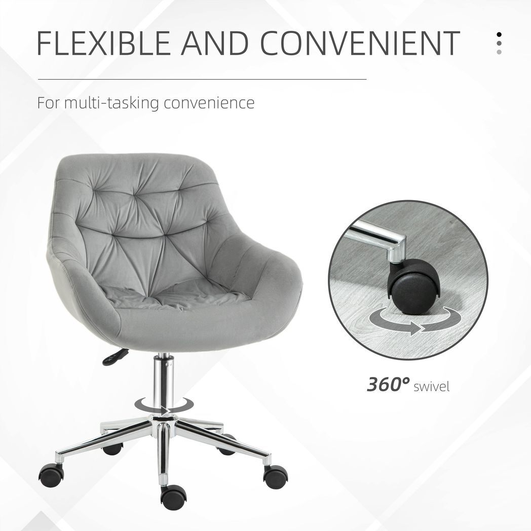 Velvet Home Office Chair Comfy Desk Chair w/ Adjustable Height Armrest Grey